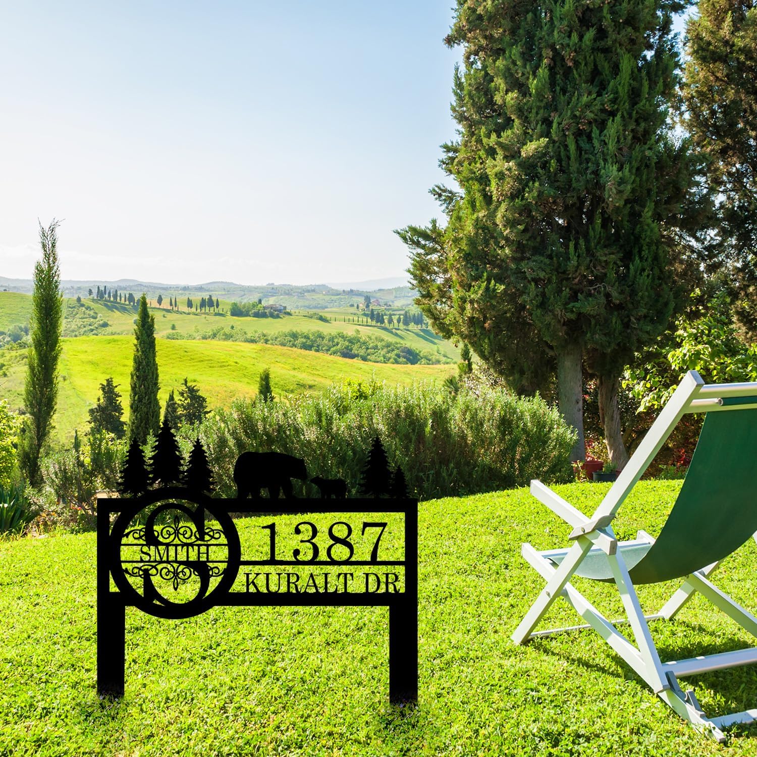Personalized Custom Bear Wildlife Decor with Metal Stake - Address House Number Name Sign for Farmhouse, Yard, Camping