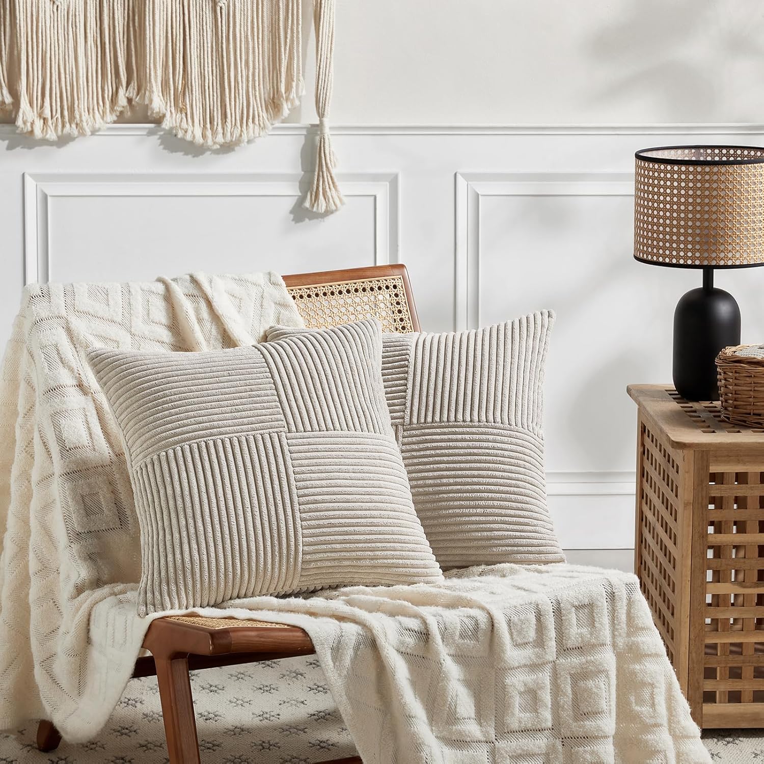 Fancy Homi 2 Packs Neutral Taupe Euro Decorative Throw Pillow Covers 28x28 Inch for Couch Bed Sofa, Rustic Farmhouse Boho Home Decor, Soft Corss Corduroy Patchwork Textured Square Cushion Case 71x71cm