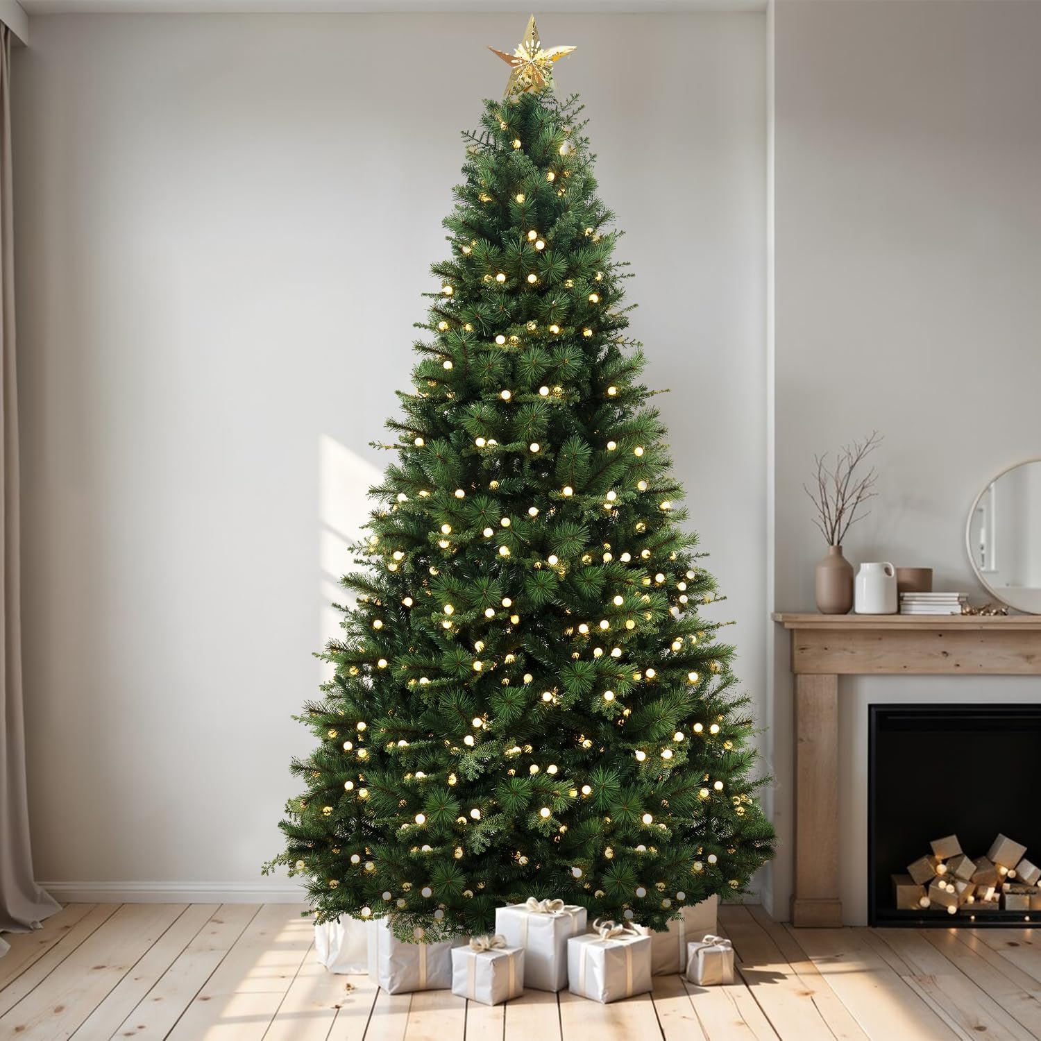 - LOOKS REALISTIC & FULL Our 9 feet Pre Lit Christmas Tree comes with 2514 branch tips, 850 warm lights, and has a girth of 62 inches, which are unmatched for a 9ft Christmas tree. So with the Naomi Home Artificial Christmas Tree, you will be bringing home the most realistic & full Christmas Tree that you can get.