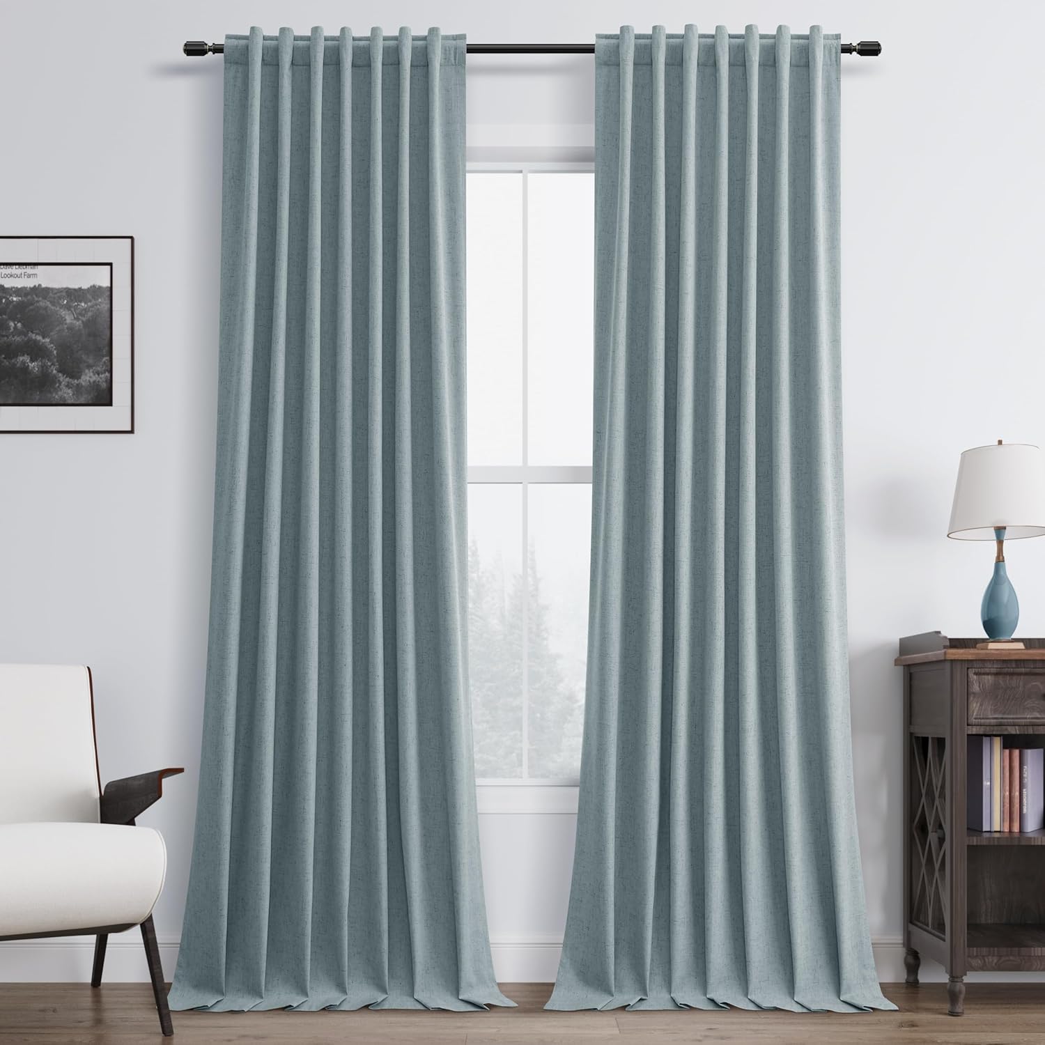 BOODII Room Darkening Curtains 120 Inch Back Tab Thermal Insulated Black Out Linen Drapes Extra Long Blackout Curtains for Patio Door Large Window Ceiling to Floor Light Blocking Stone Blue 52x120