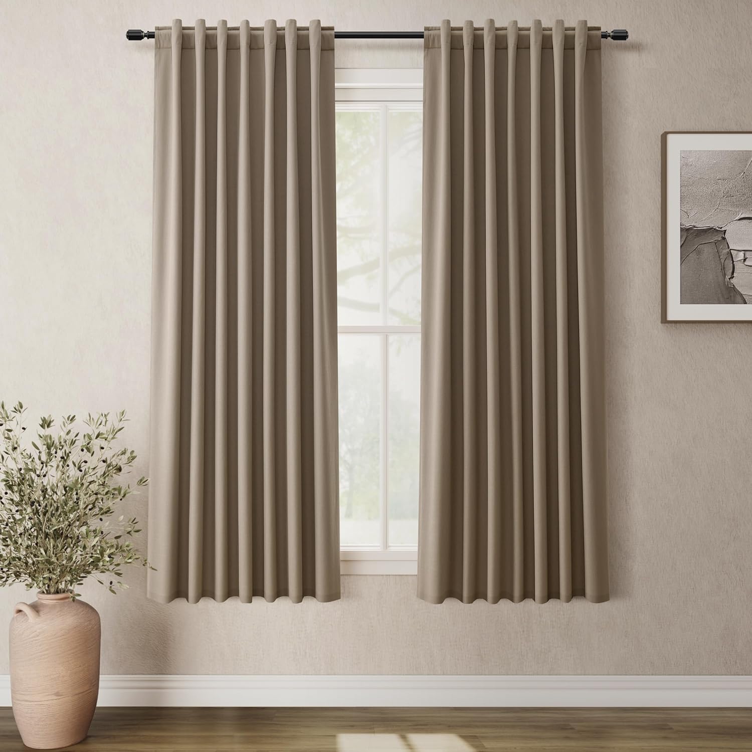 - Thermal Insulated Room Darkening Curtains: The blackout curtains with 300GSM high-density linen blend fabric block out the heat in summer and cool air in winter while sunlight blocking and soundproof. Provide a easy and comfortable home.