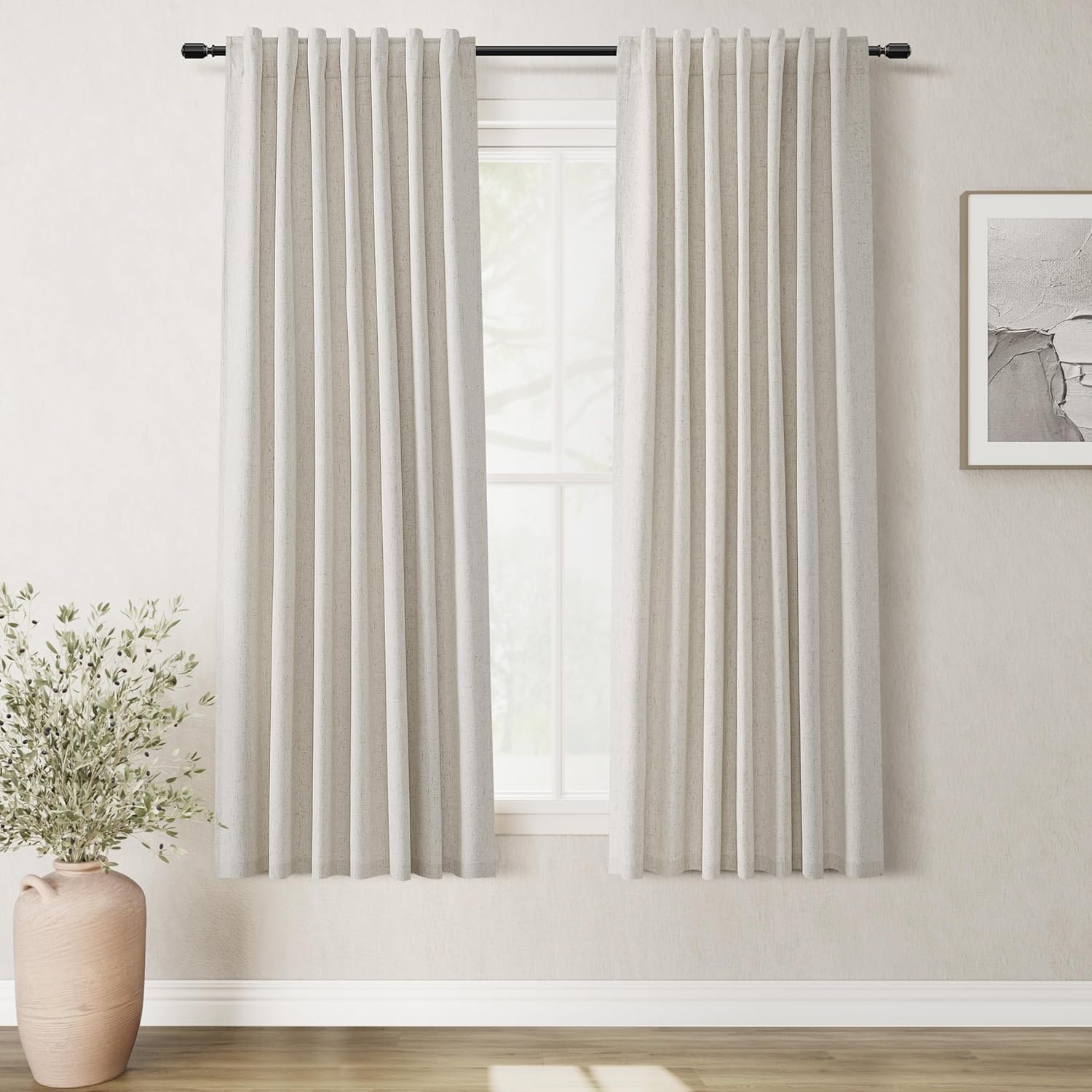- 3 Hanging Options: Differ from the traditional curtains with grommet, BOODII linen curtains with back tab and rod pocket can full block sunlight fully. (1) Using the back tabs design to create an elegant pleated look and sit closer to the wall than traditional ring curtains, which helps to block out more sunlight; (2) Using rod pocket for a classic effect; (3) Using clip rings on track system or curtain rod, slide open/closed easily (clip rings are not included).
