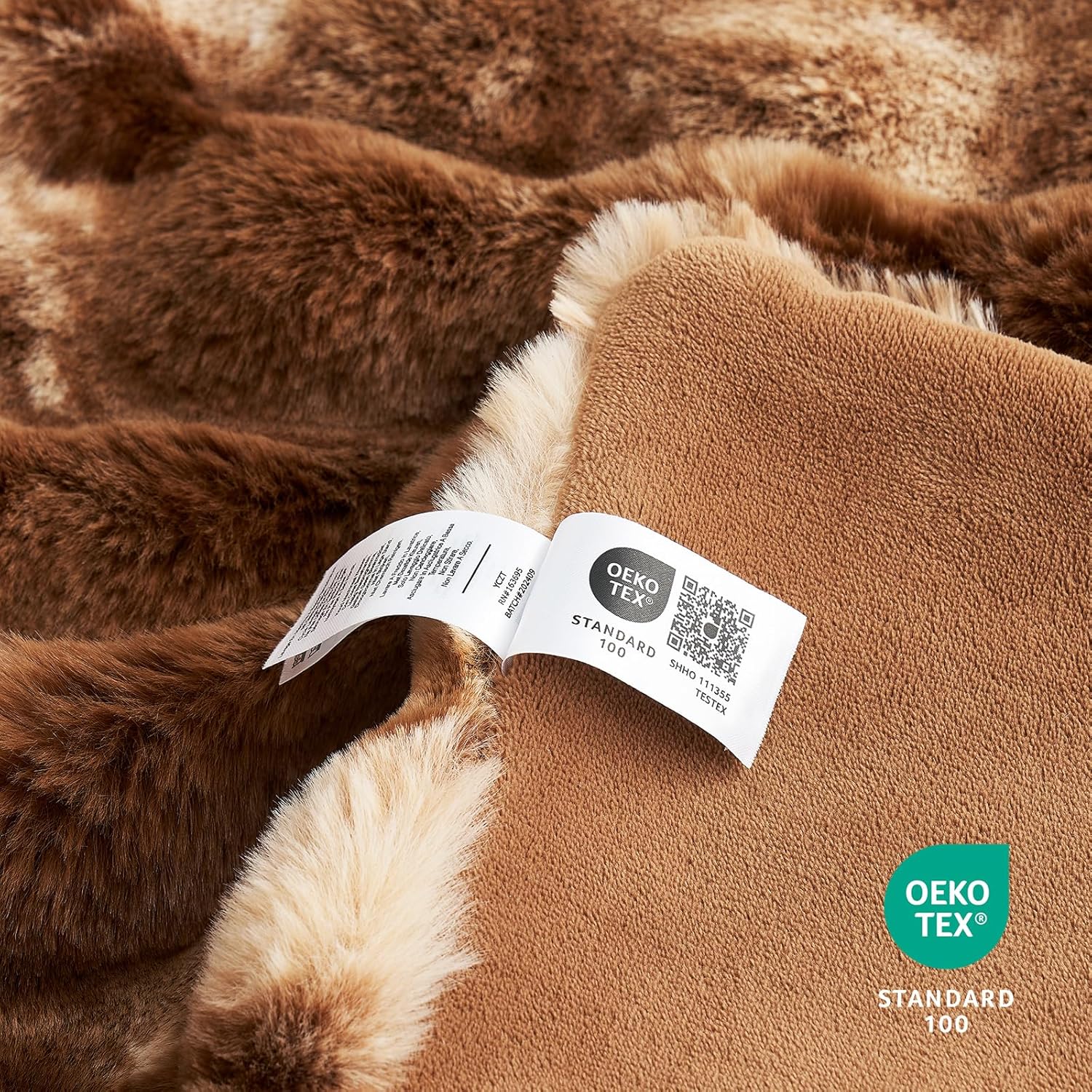 Cozy Bliss Faux Fur Throw Blanket for Couch, Fuzzy Soft Plush Thick Bubble Blanket for Sofa Bedroom Living Room, 50 * 60 Inches Tie Dye Brown
