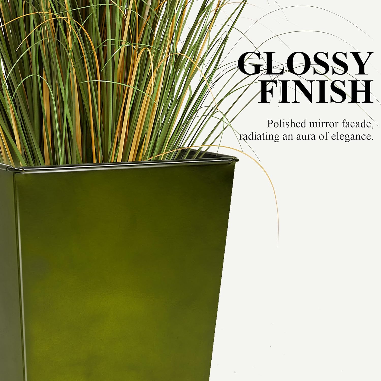 - Stylish Design: WORTH 25" tall square tapered planters feature a luxurious glossy green finish; The sleek, modern design seamlessly complements any decor style, making these planters a stylish addition to your home or garden