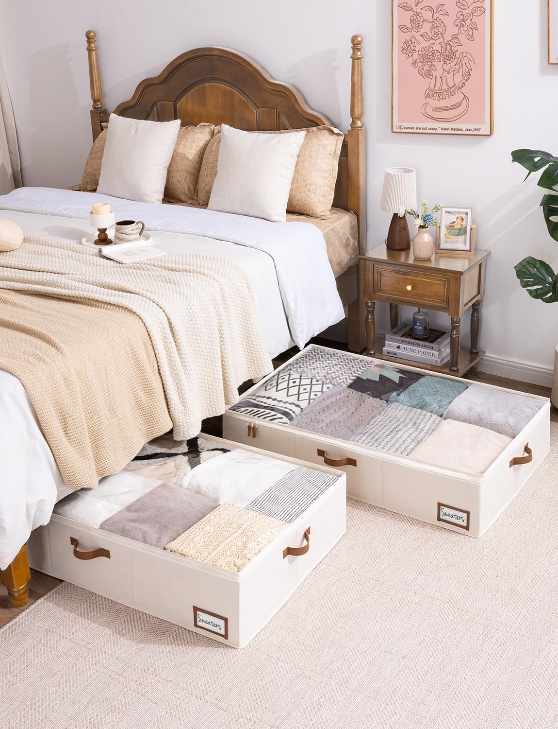 StorageWorks 117L Under Bed Storage Containers with Handles and Label Holder, 2 Pack Ultra-thick Fabric Underbed Bins, Closet Organizer for Clothes, Blankets, Sweater
