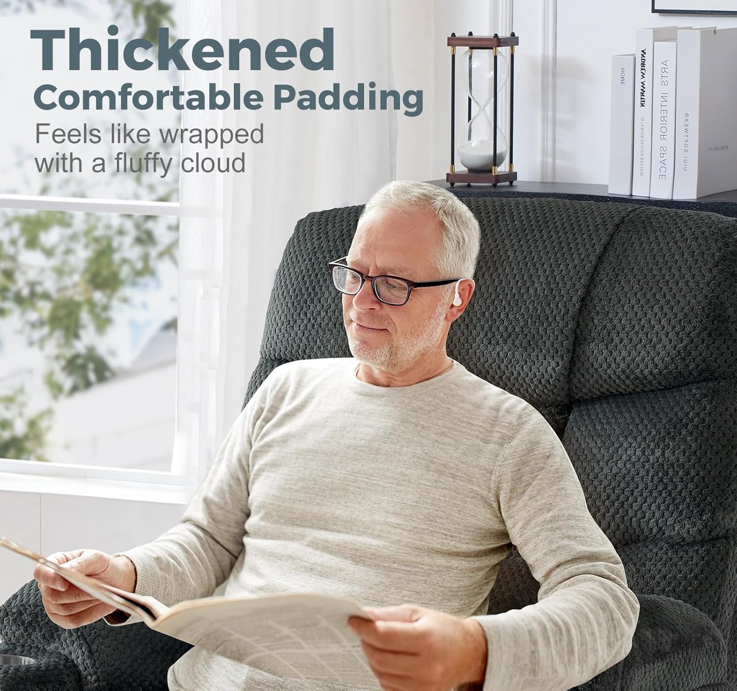 - γThickened Comfortable PaddingγOverstuffed pillow designed on the back, seat, and armrest for support. The 29.9'' higher back, 24.8'' wider cushion, and high-grade antiskid fabric provide a super comfortable sitting feel. It is like sitting on a fluffy cloud that relaxes and refreshes your body removing stress and anxiety from your body and brain