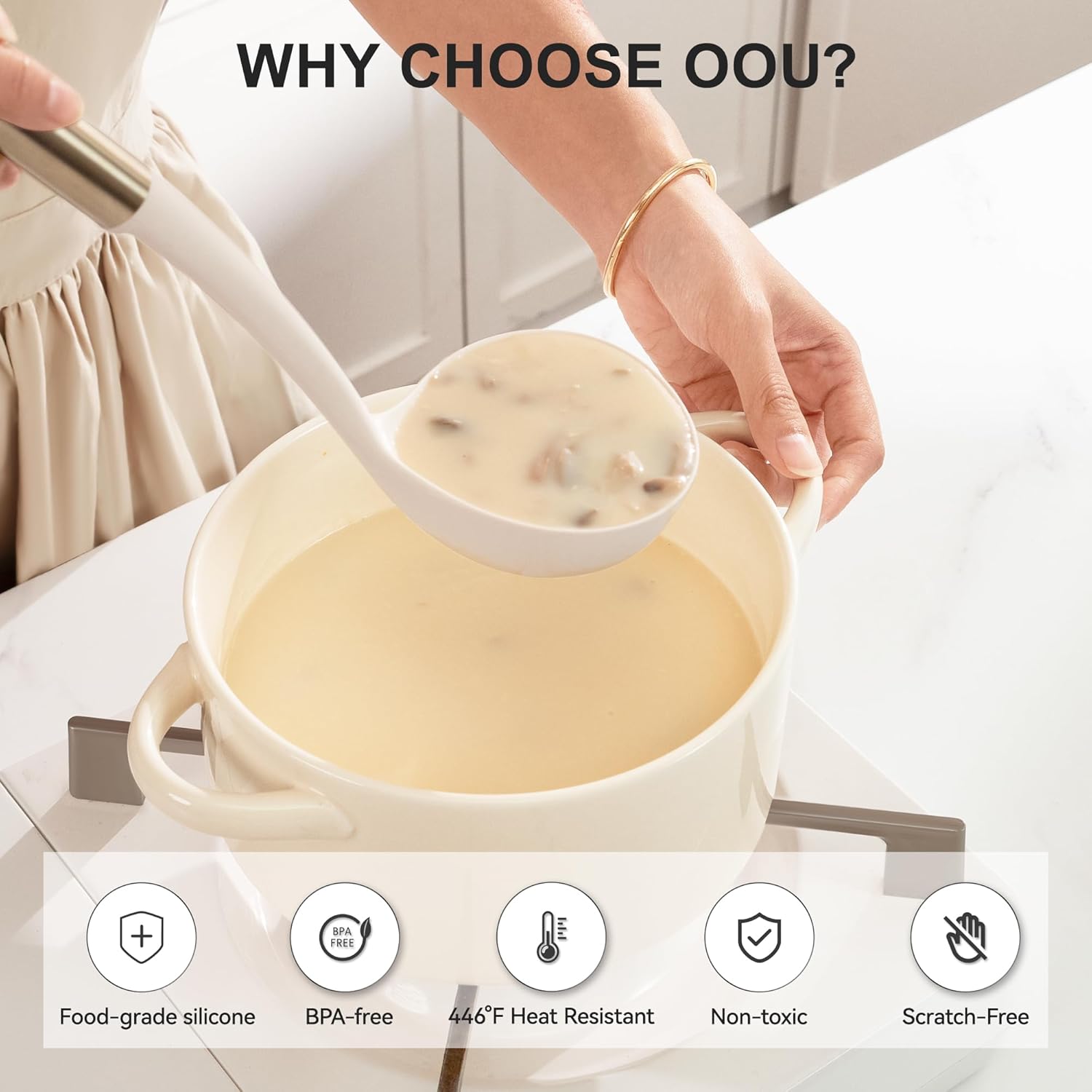 - 【Scratch-Free & Easy Access】Soft silicone edges protect cookware from scratches, while the extended neck keeps hands away from grease. Strong built-in magnets allow quick, neat storage on metal surfaces.