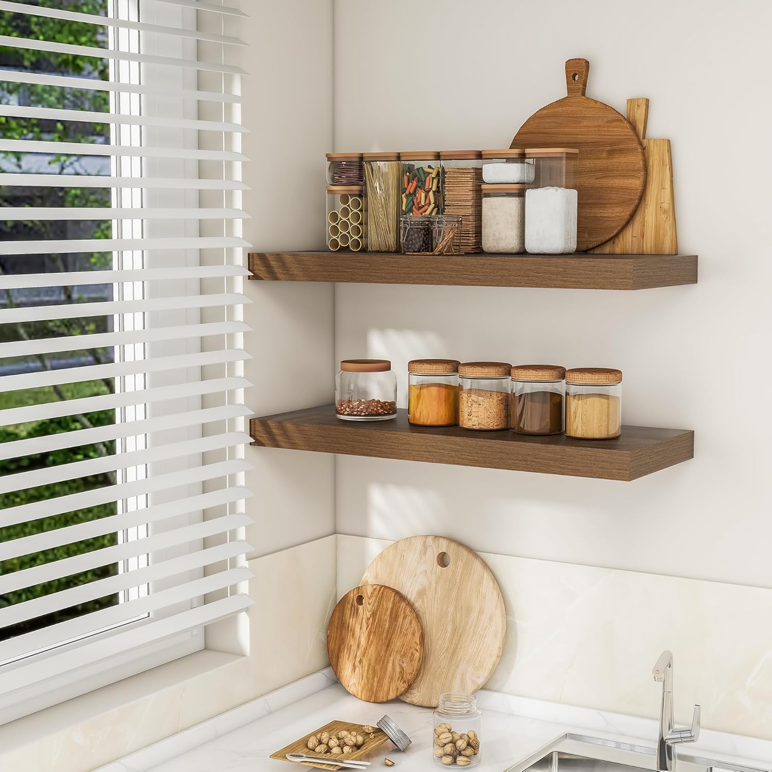 RICHFOCUS 36Inch Floating Shelves for Wall 2 Pack Shelves for Bedroom|Kitchen|Bathroom Wall Mounted Rustic Wood Floating Shelf with Invisible Brackets for Books|Storage|Decor, Walnut