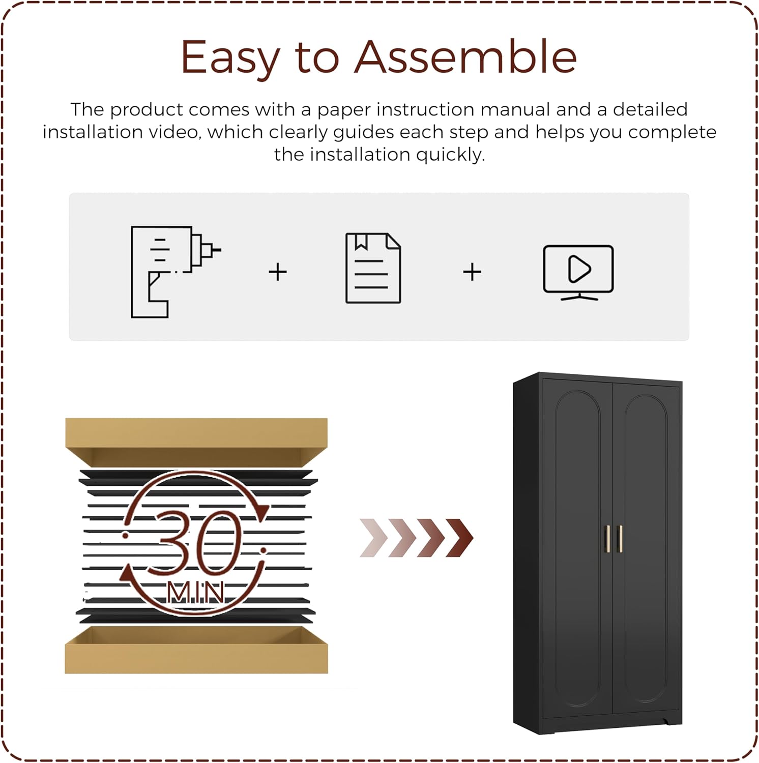- 【Durable Cold-Rolled Steel Construction】 Built from cold-rolled steel, this pantry cabinet resists chipping, rust, and corrosion, offering long-lasting durability. Its electrostatic powder coating makes cleaning easy, providing a reliable, low-maintenance storage solution for any space.