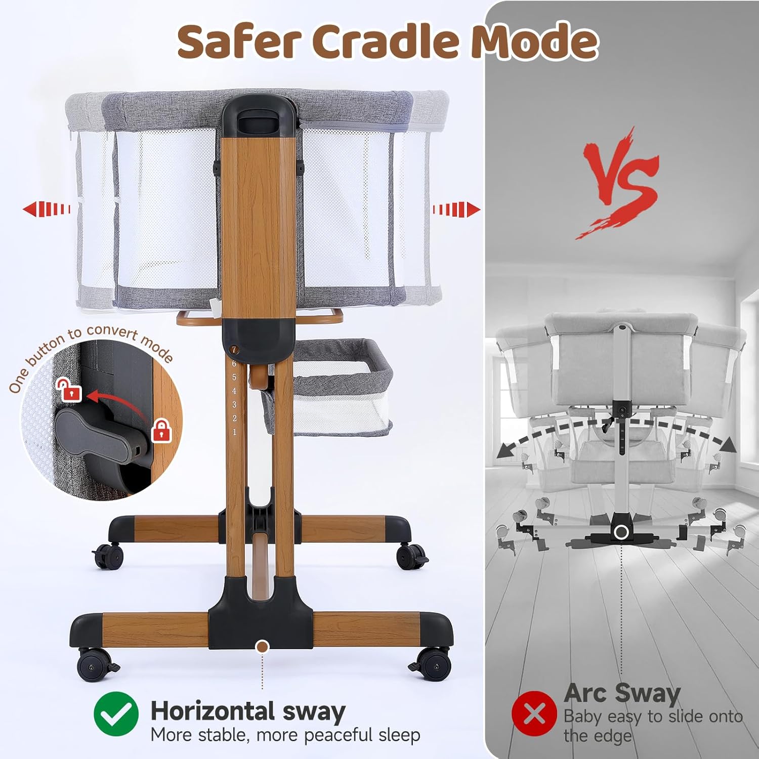 - ใ3 in 1 Multipurpose Bassinetใ It is a versatile baby bassinet that serves as a bedside co-sleeper, rocking bassinet, and standalone crib. The baby bassinet saves space and money while providing flexibility for different needs.
