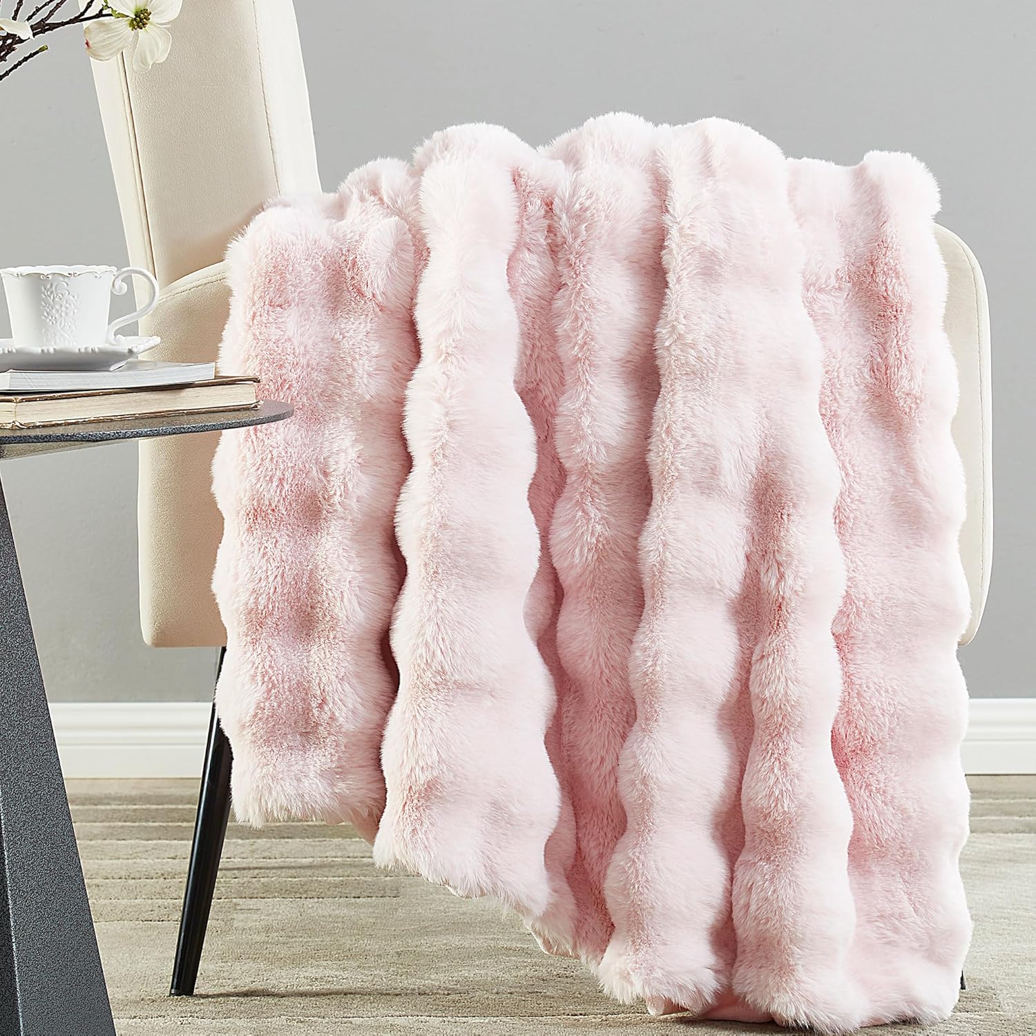 - 【Exquisite carft make the bubble stable】Our luxe large fuzzy furry rabbit faux fur throw blankets are well made in every process. We gurantee its skin-firendly and eco-friendly due to premium microfiber selection. High-end weaving ensure the durable and fairly uniform of each bubble. Neat stitching with minky fleece velvet is not only a brilliant match,but also provide extremely soft and warm. Various chic color adoption decorate the bubble bright and colorful. You can choose the color that suits you best.