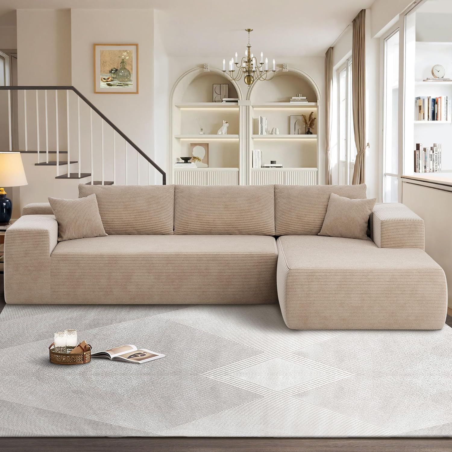 104" Cloud Sectional Couches for Living Room,L Shaped Boneless Couch in A Box,Sleeper Sofa with Comfy Chaise No Assembly Required,Camel