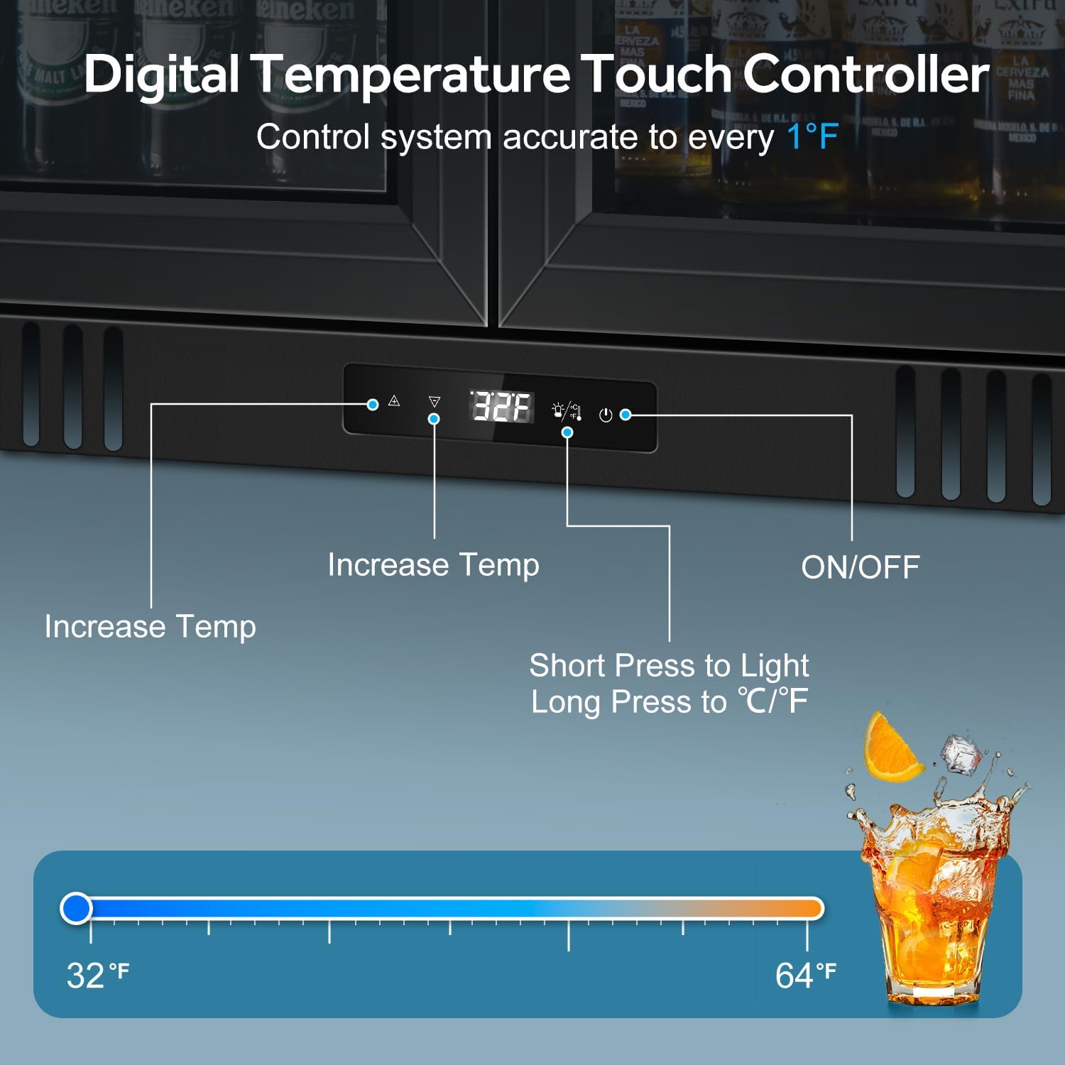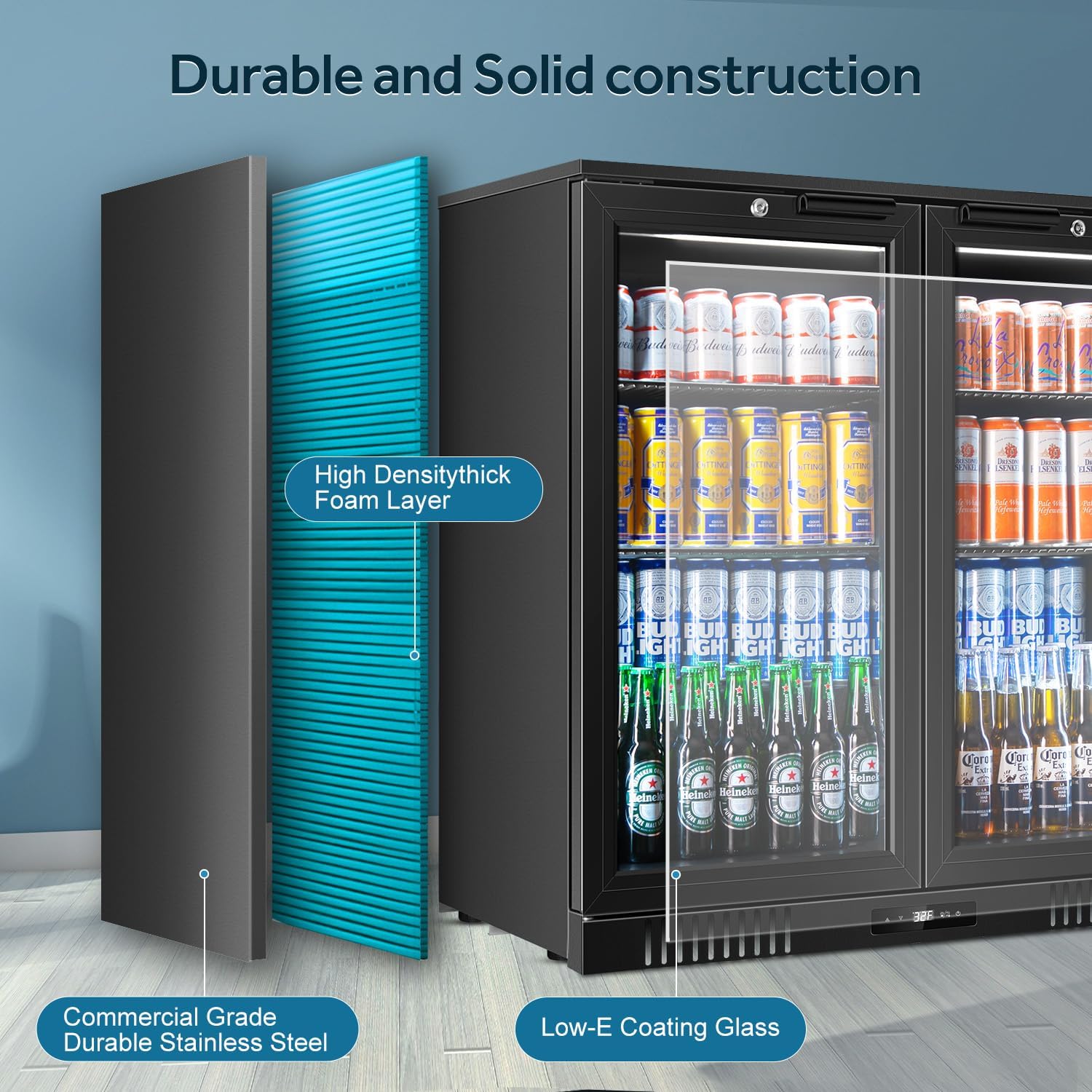 Tylza Back Bar Cooler With 2 Glass Doors, 7.2 Cu.Ft Under Counter Back Bar Refrigerator with LED Lighting, Safety Locks, Counter Height Bar Beverage Cooler for Beer, Soda Drinks, Wine, Black
