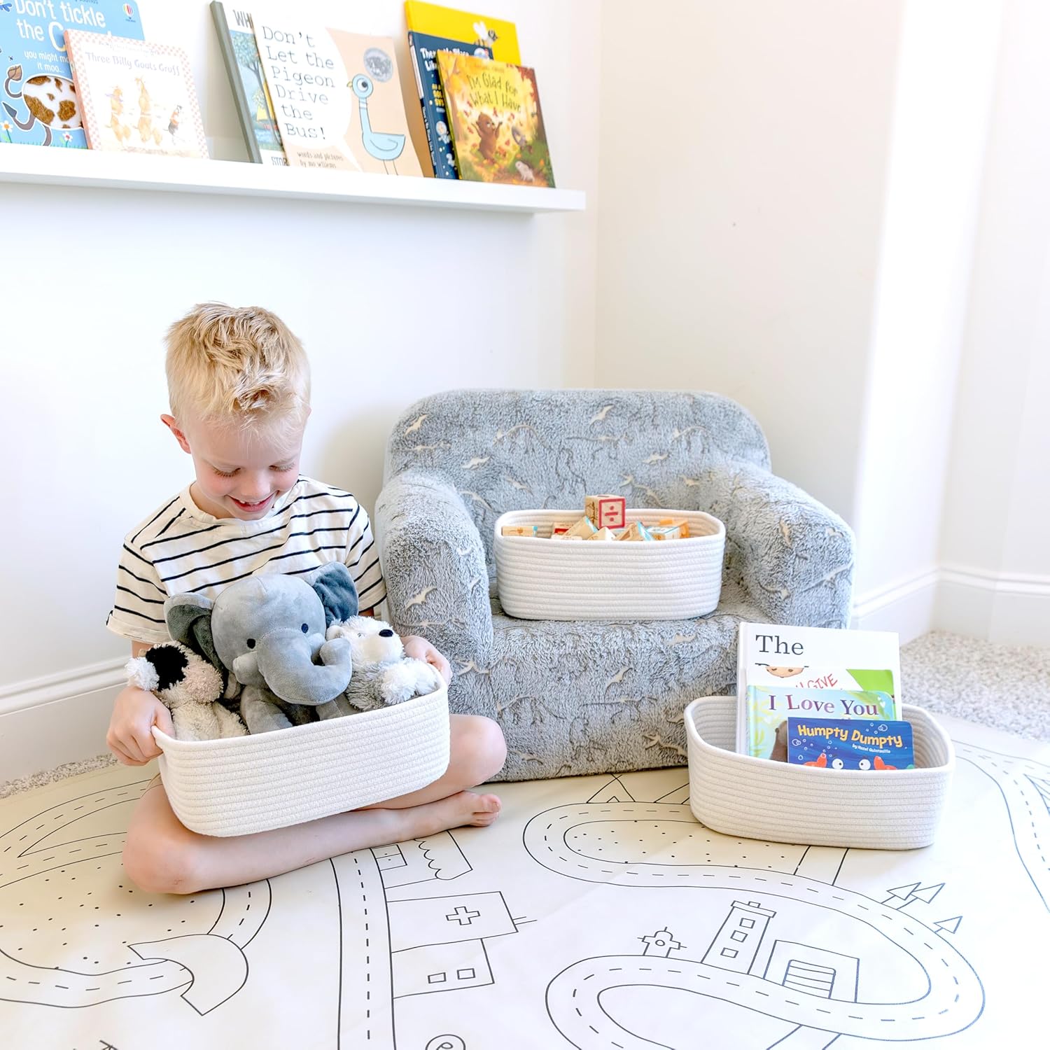 - Safe, Natural Cotton Organizer Bins: Crafted from the highest quality material in the market, our storage bins are oh-so-sturdy (and cute) and ready to take on little humans. They’re 100% safe, so you can rest easy if teething toddlers take a nibble. Reinforced Hidden Handles: Now you see ‘em, now you don’t! With completely hidden handles that blend seamlessly into the rope basket, you’ll be the Houdini of home organizing. They’re even double-stitched and reinforced for extra heavy loads!