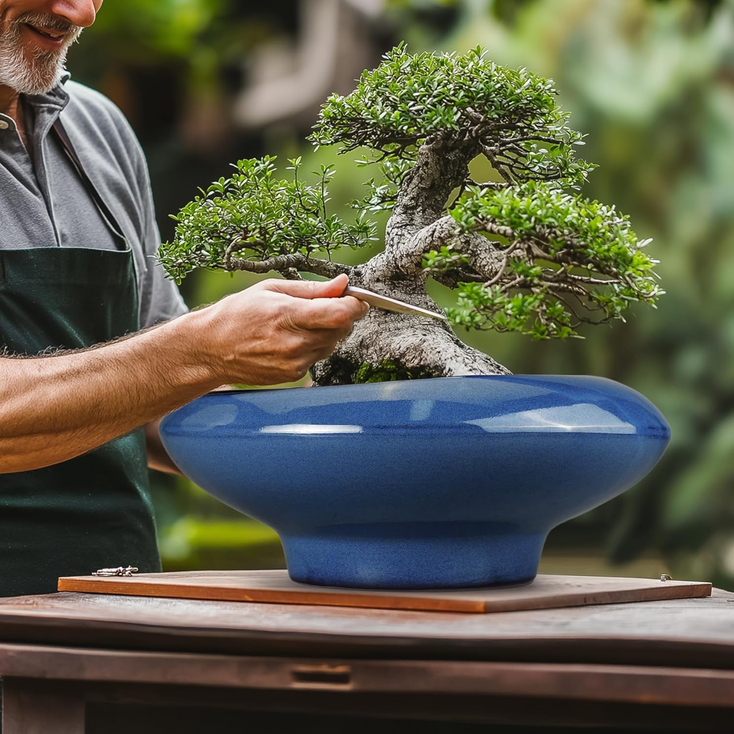 - Elegant Aesthetic: Featuring a beautiful blue glaze finish and unique artistic appearance, this bonsai pots combines practicality with style, a nice decor for table, windowsill, office, shelf, patio, deck, balcony, garden, any indoor or outdoor space