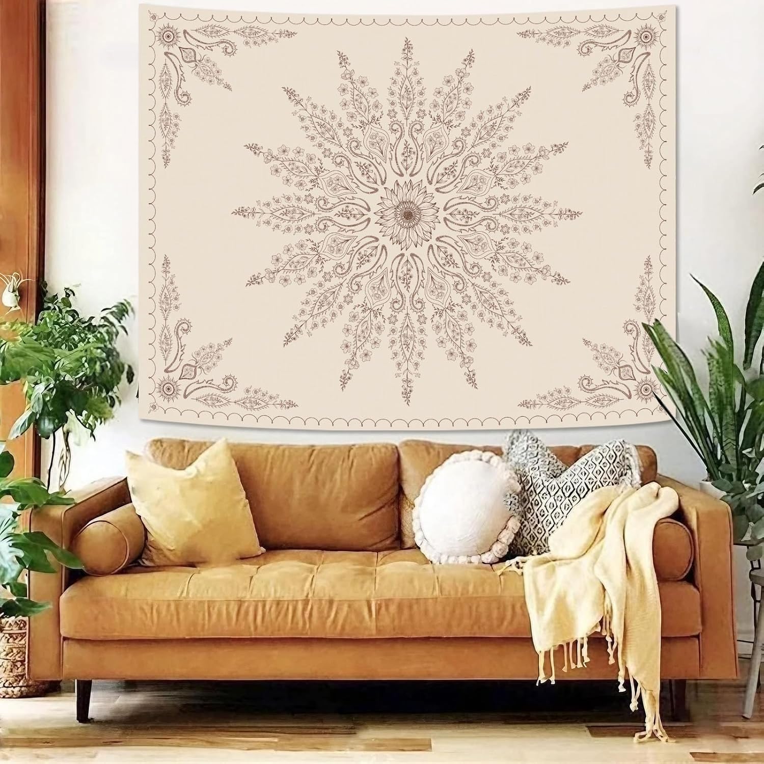 Fowocu Boho Floral Mandala Tapestry for Bedroom Aesthetic Bohemian Flower Wall Tapestry Beige Hippie Indian Large Tapestries Wall Hanging for Living Room Dorm Decor 80 x 60 Inch