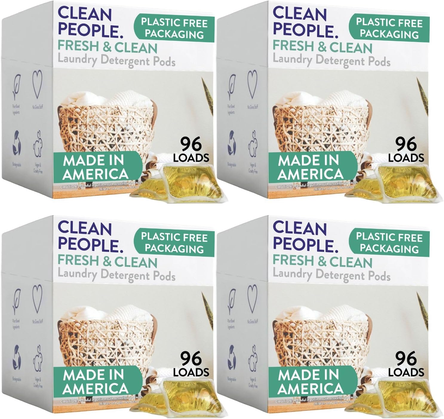 Clean People Laundry Detergent Pods - Recyclable Packaging, Hypoallergenic, Stain Fighting - Ultra Concentrated, Laundry Soap (384 Count, Fresh Scent)