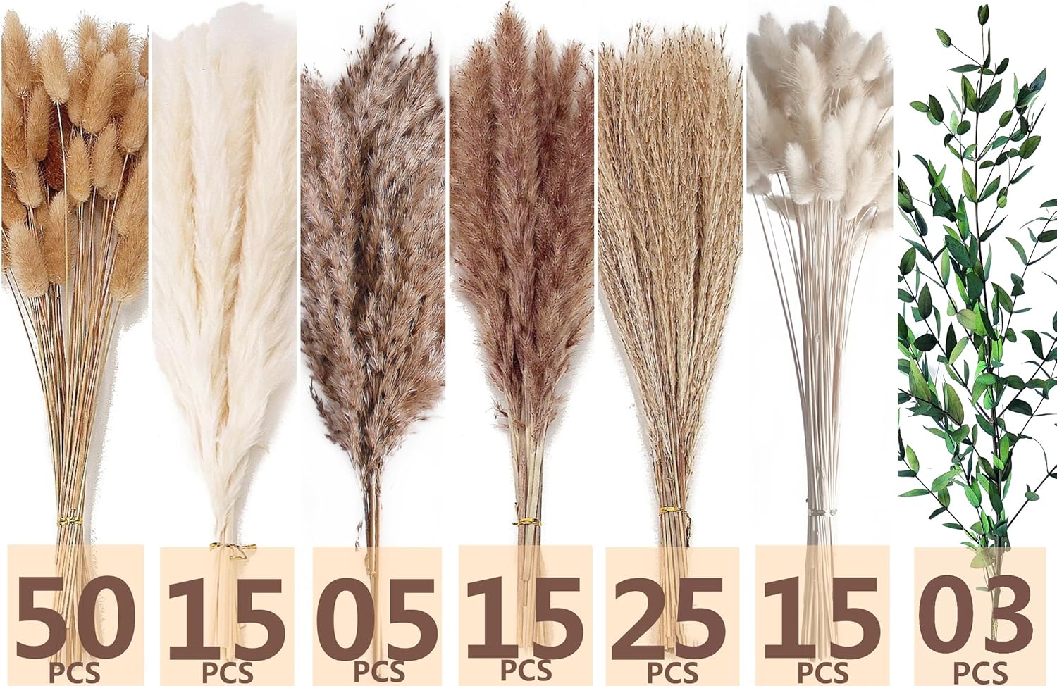 123 PCS Dried Flower Bouquet – Pampas Grass, Floral Decor for Home, Wedding, and Boho Style | Perfect for Vases, Fall, Spring, Summer, and Winter Arrangements