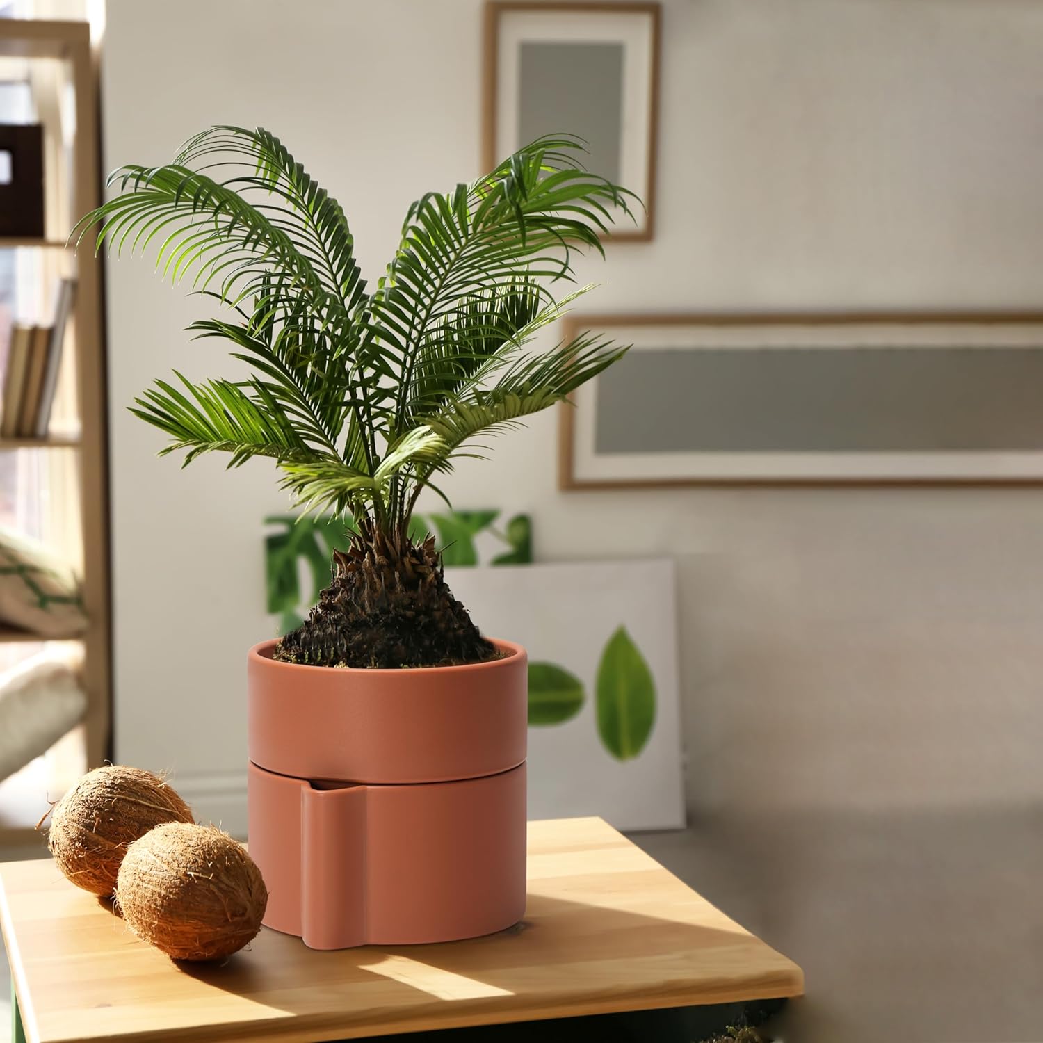 - Innovative Self-Watering System: Designed with a traditional porous terracotta insert, this planter provides a continuous supply of moisture to your plants, maintaining optimal humidity levels without frequent watering.