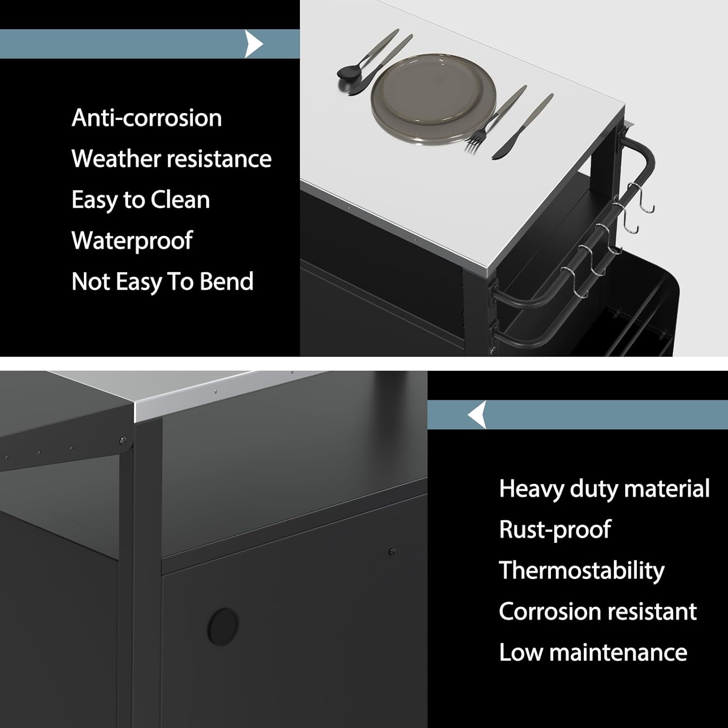 - SCIENTIFIC HIGH-CAPACITY: The large cabinets offer 52 Gallons of closed storage for everything you need from the bad weather. The double shelves side sauce rack store all your bottles and jars. S-shape hooks conveniently provide additional room for place your tongs, brushes, pizza peel. Paper towel holder for easy access when cooking.