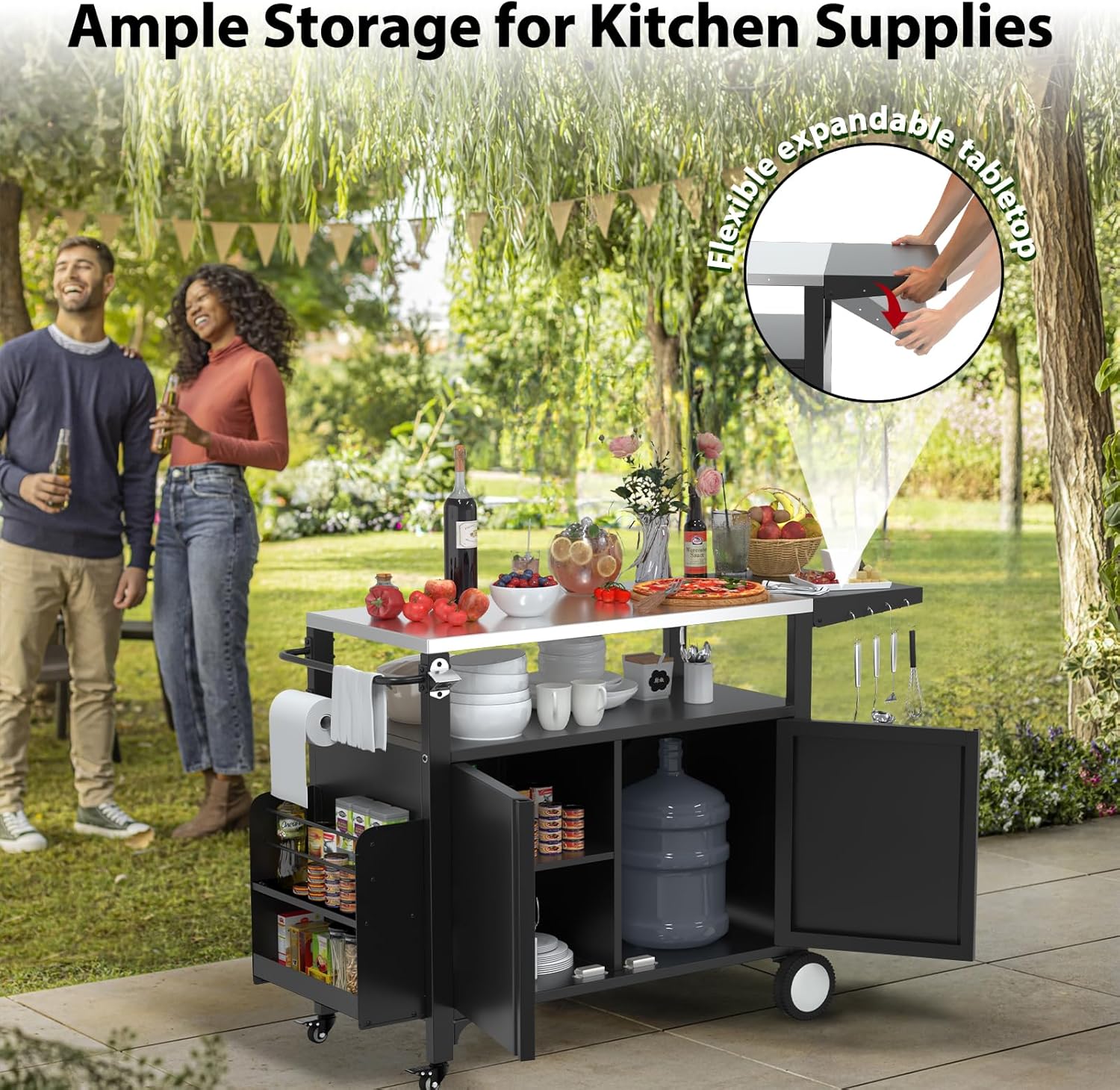 - LARGE DIMENSIONS: Open the second desktop on the side and you will get a tabletop measuring 50'' x 18.1'', provides an adequate workplace for most BBQ griddle grill or pizza oven, or preparing food aside when cooking. Besides the tabletop, you may also place food materials, seasonings, and accessories on the middle shelf.