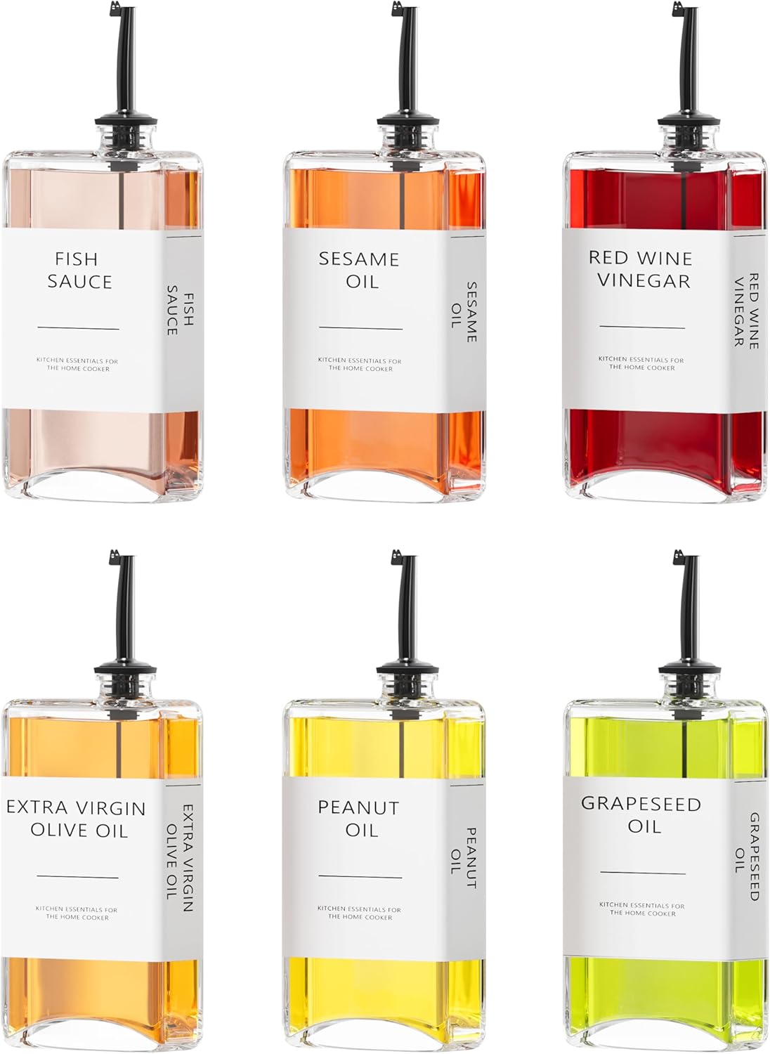 New England Stories Kitchen Cooking Oil Dispenser Set, Olive Oil and Vinegar Bottles, Soy Sauce Dispenser - 6 Pieces, Black, Durable & Stylish Design
