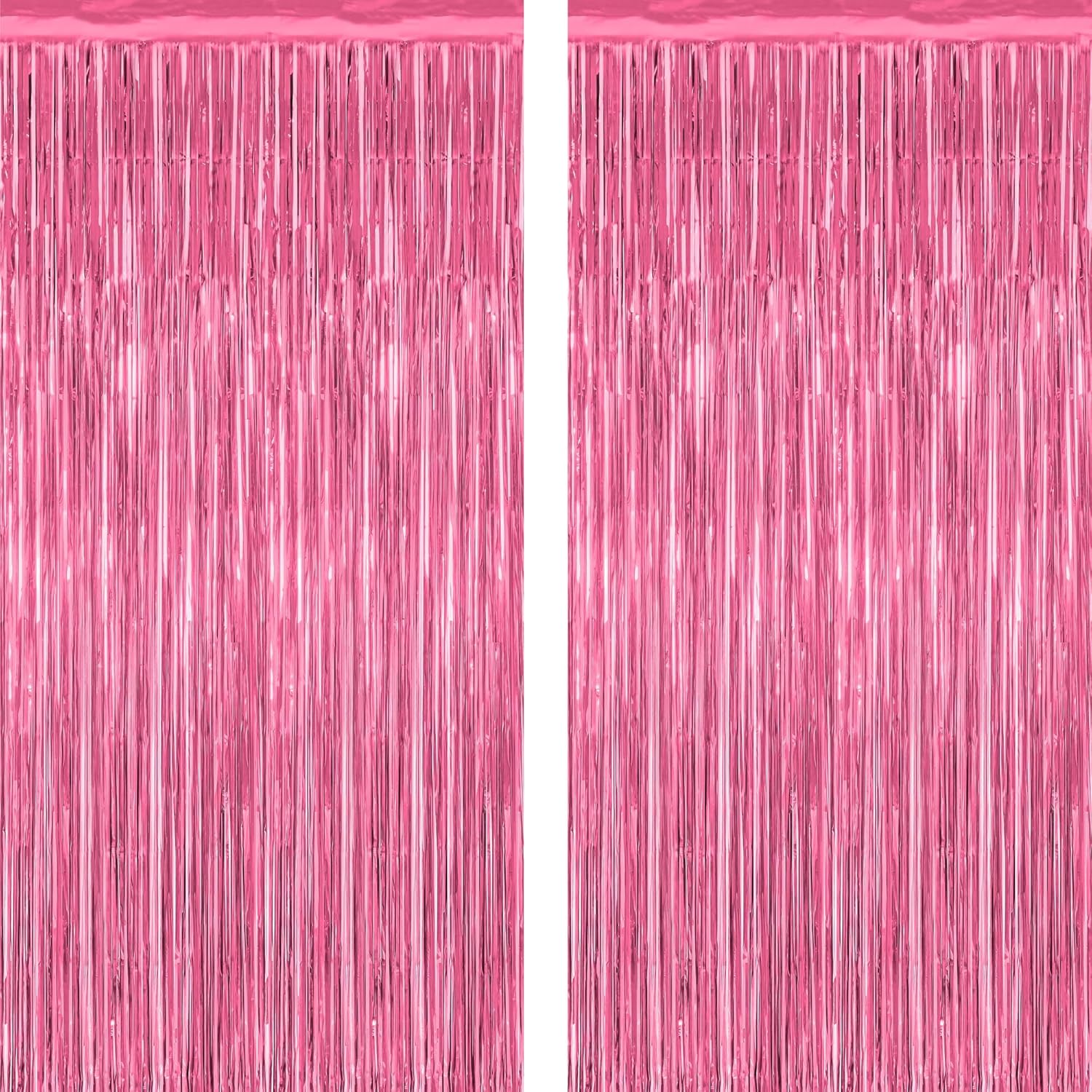 2 Pack Pink Party Decorations, 3.28 FT x 7.05 FT Pink Backdrop, Metallic Tinsel Backdrop Fringe Curtains Backdrop Curtains, Photo Backdrop Party Supplies Birthday Party Decorations