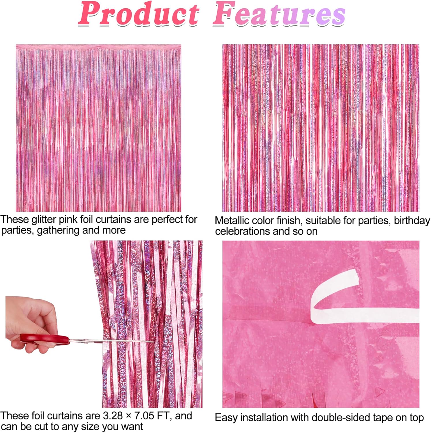 - Multi-situation Application: These laser pink tinsel backdrop are perfect for Valentine's Day, weddings, birthday parties or other holiday celebrations.