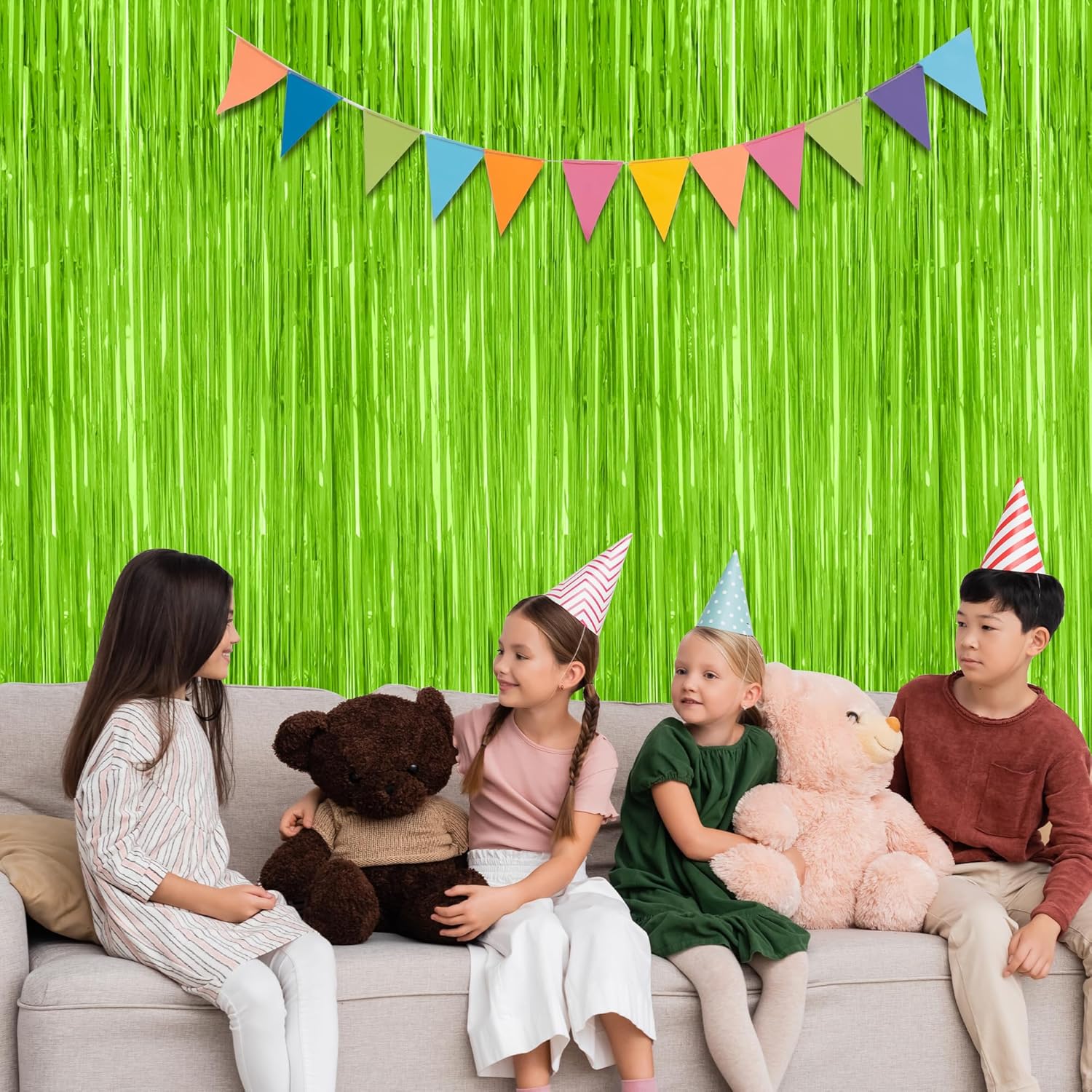 - Colorful Design: Each fringe curtains are grass green color, with a reflective metallic finish, both fashionable and vibrant, and are suitable for your party decorations.