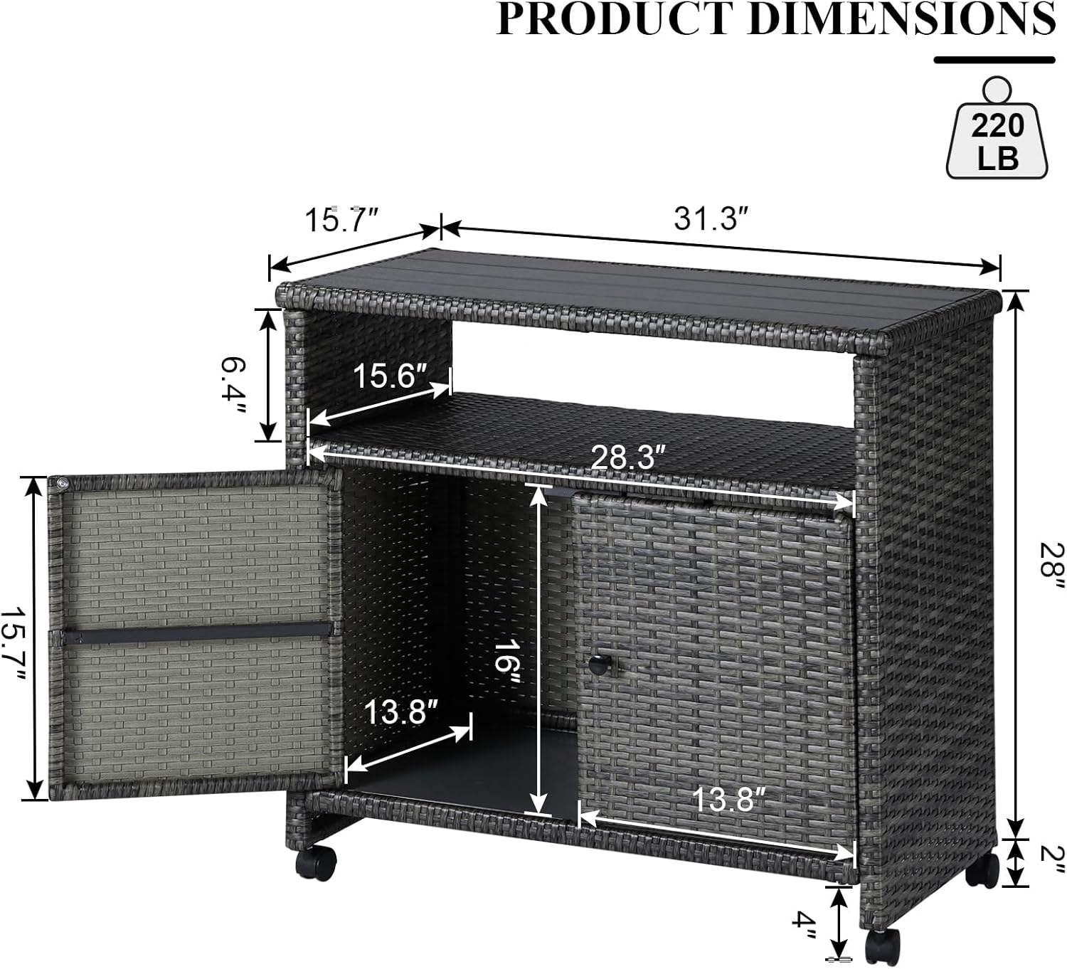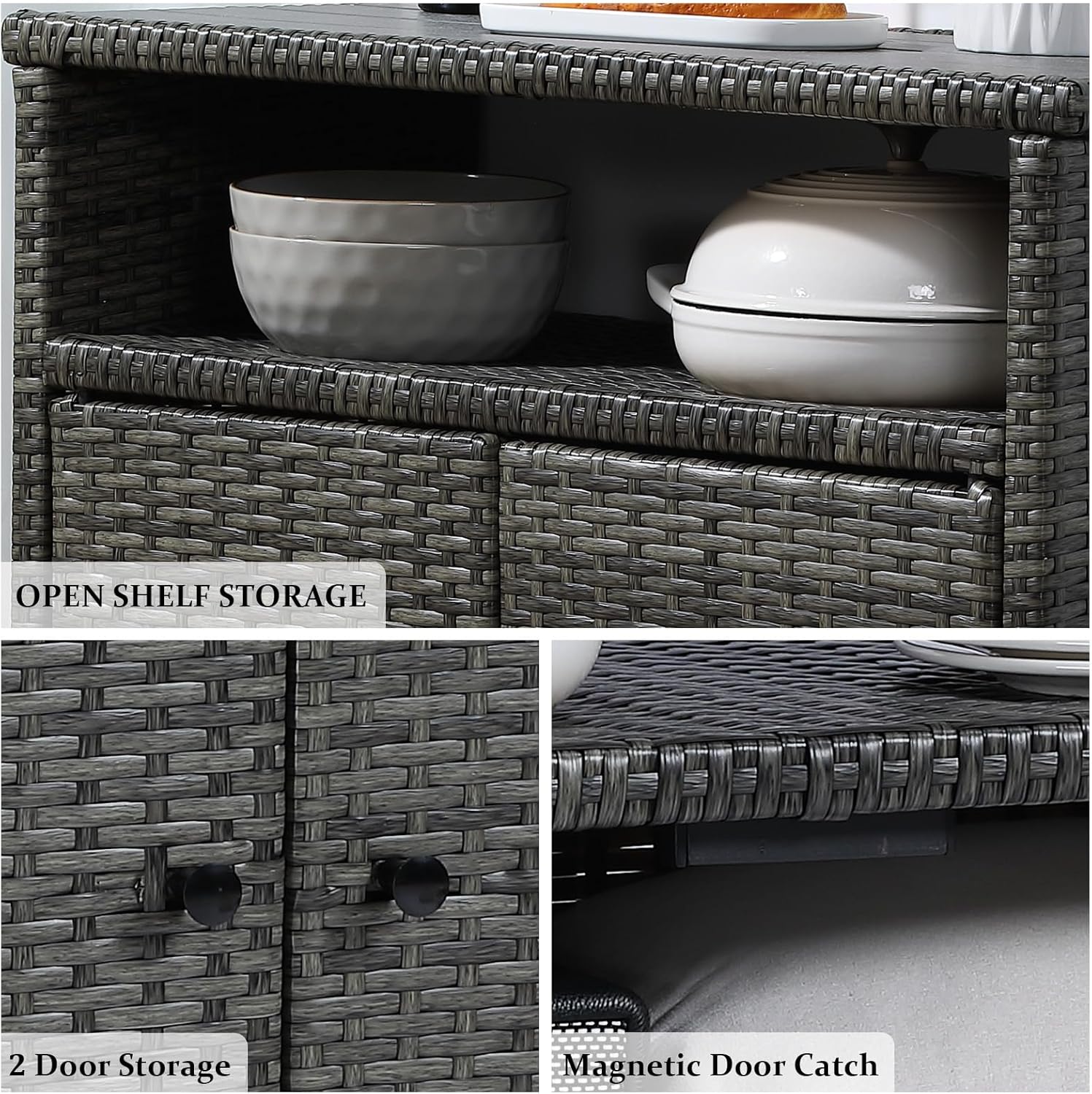 Outdoor Wicker Storage Cabinet,Patio Bar Table with Wheel, Outdoor Buffet Cabinet Movable, Garden Weather-Proof Bar Table/Cart for Indoor&Outdoor (Morden Gray)