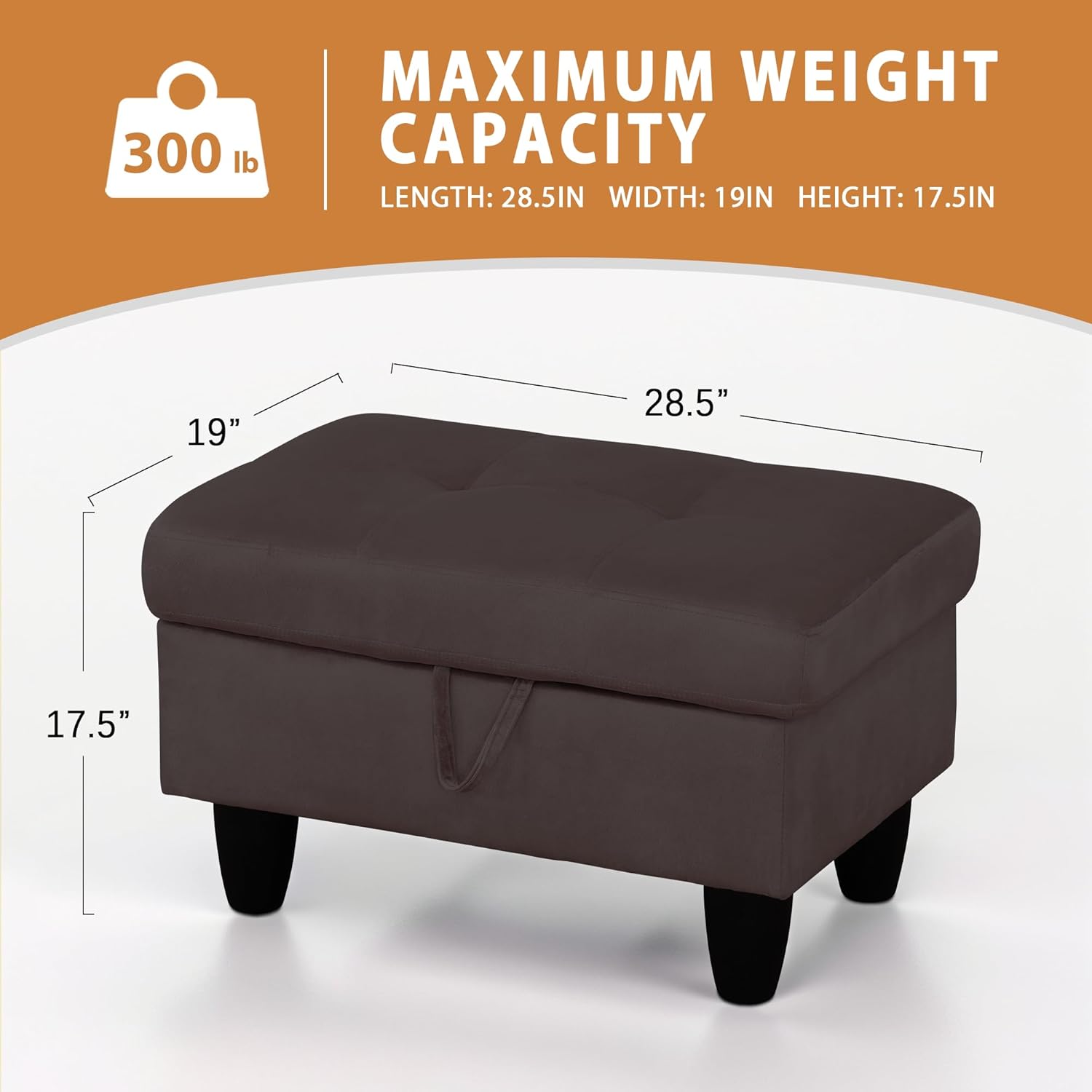 - SIZE & CAPACITY: Measuring 28.5" L x 19" W x 17.5" H, this storage ottoman is crafted to integrate smoothly into any room. With a weight capacity of up to 300 lbs, it provides both a stylish touch and a durable, dependable option for seating or storage in your home.
