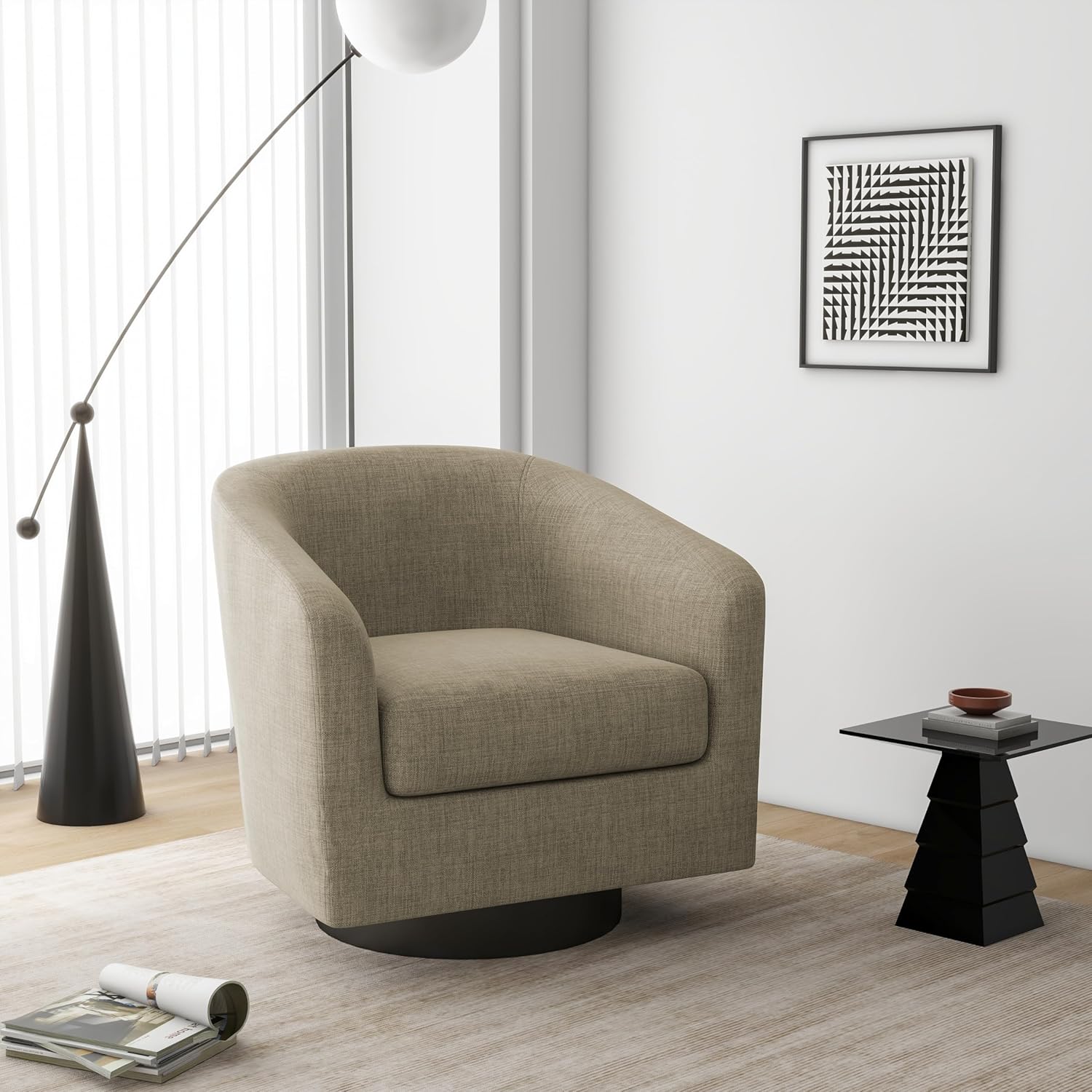 Swivel Barrel Accent Chair, Modern Round Linen Arm Chair for Living Room, Bedroom, Comfy Club Reading Chairs for Adults(Linen Fabric, Light Brown, Set of 4