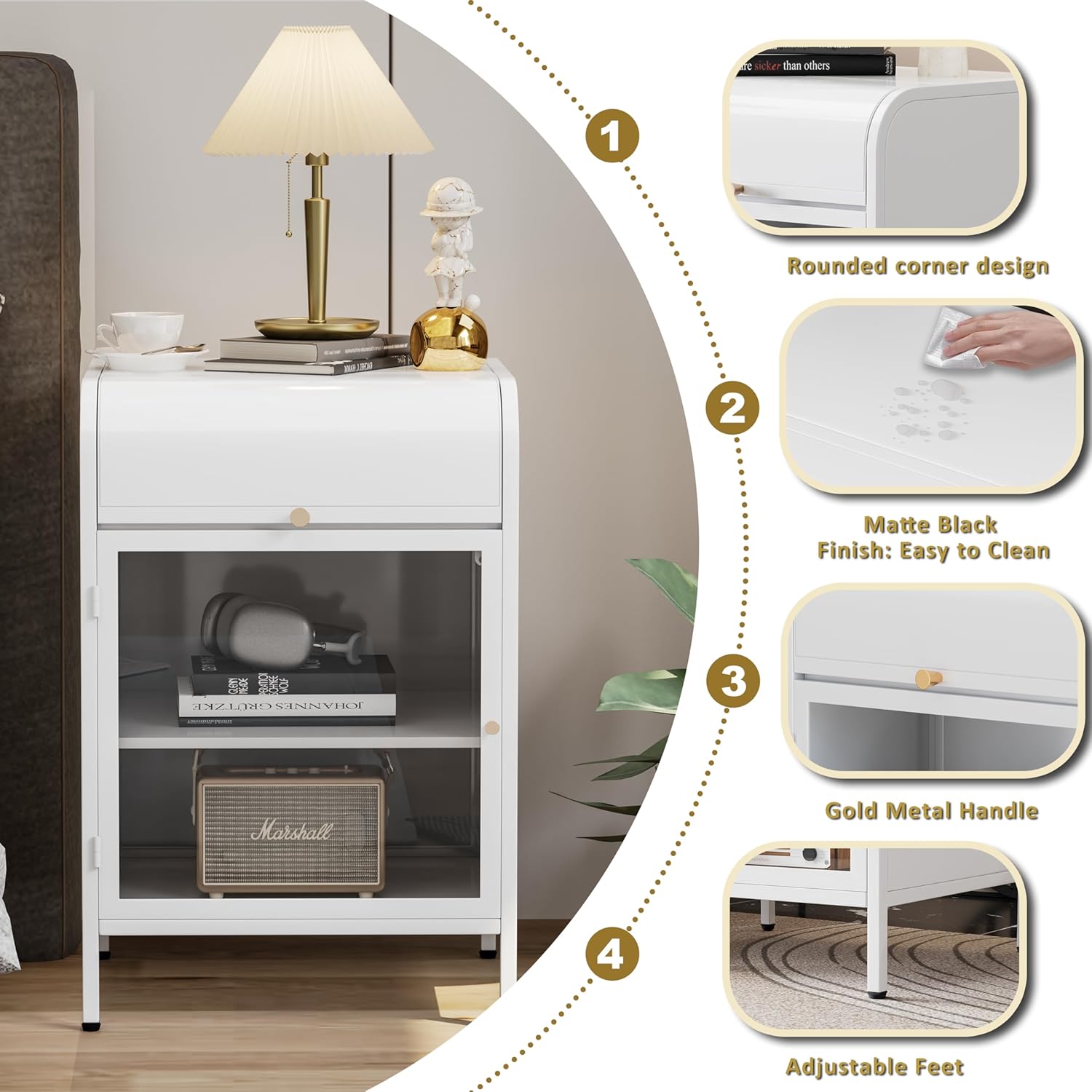 - Stylish Glass Door:Enhance your bedroom decor with our nightstand's chic design. The transparent glass door adds a unique artistic touch, while the metal frame features a sleek matte finish, effortlessly matching any room style. It combines modern and mid century element makes the room look more stylish