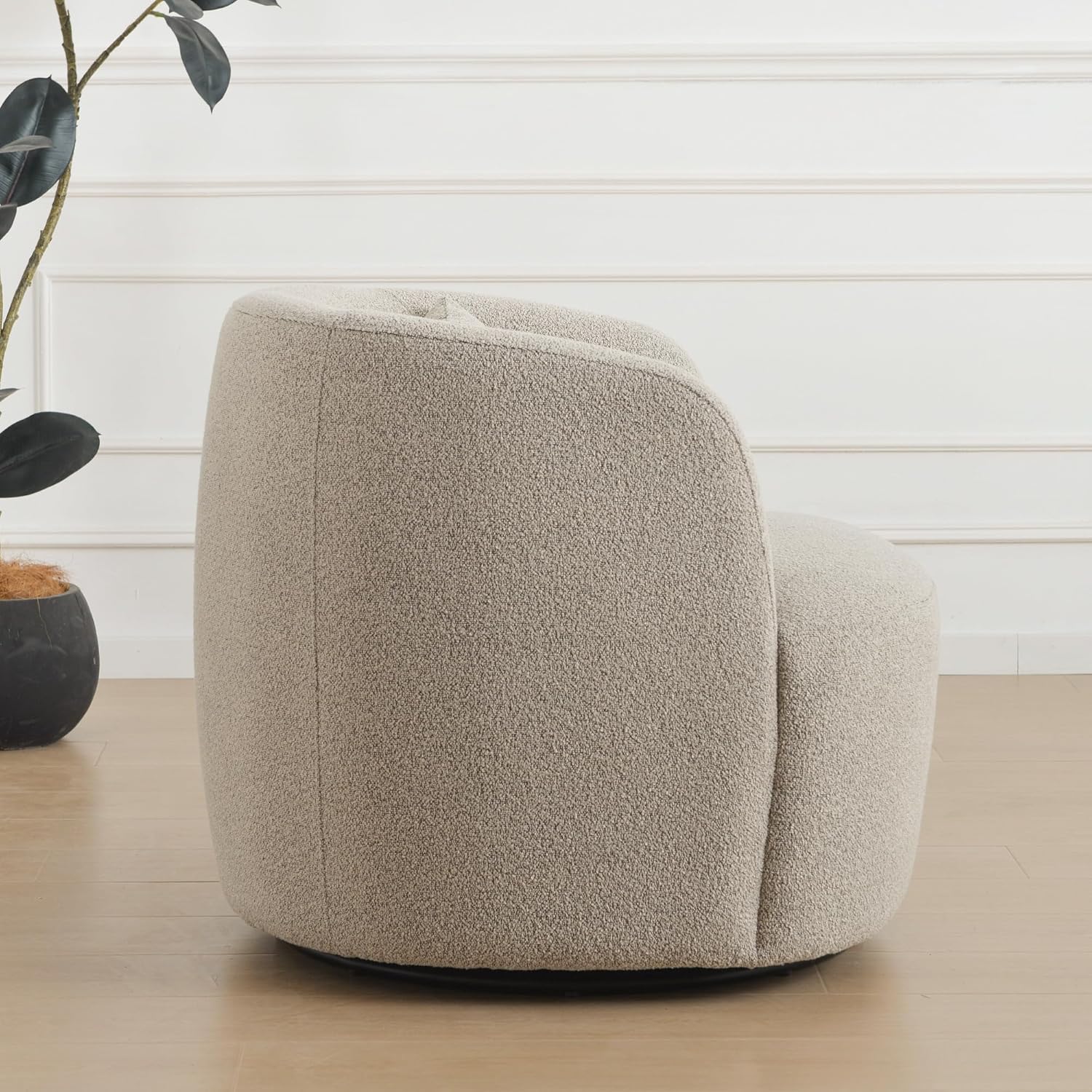- Ready to Use with Easy Maintenance: Arriving fully assembled, this swivel boucle barrel chair is ready to use right out of the box. To keep it looking its best, simply use a damp cloth for small spills and avoid direct sunlight to maintain the fabric's color and texture. This swivel barrel chair is designed for comfort, style, and practicality, making it a must-have for any home.