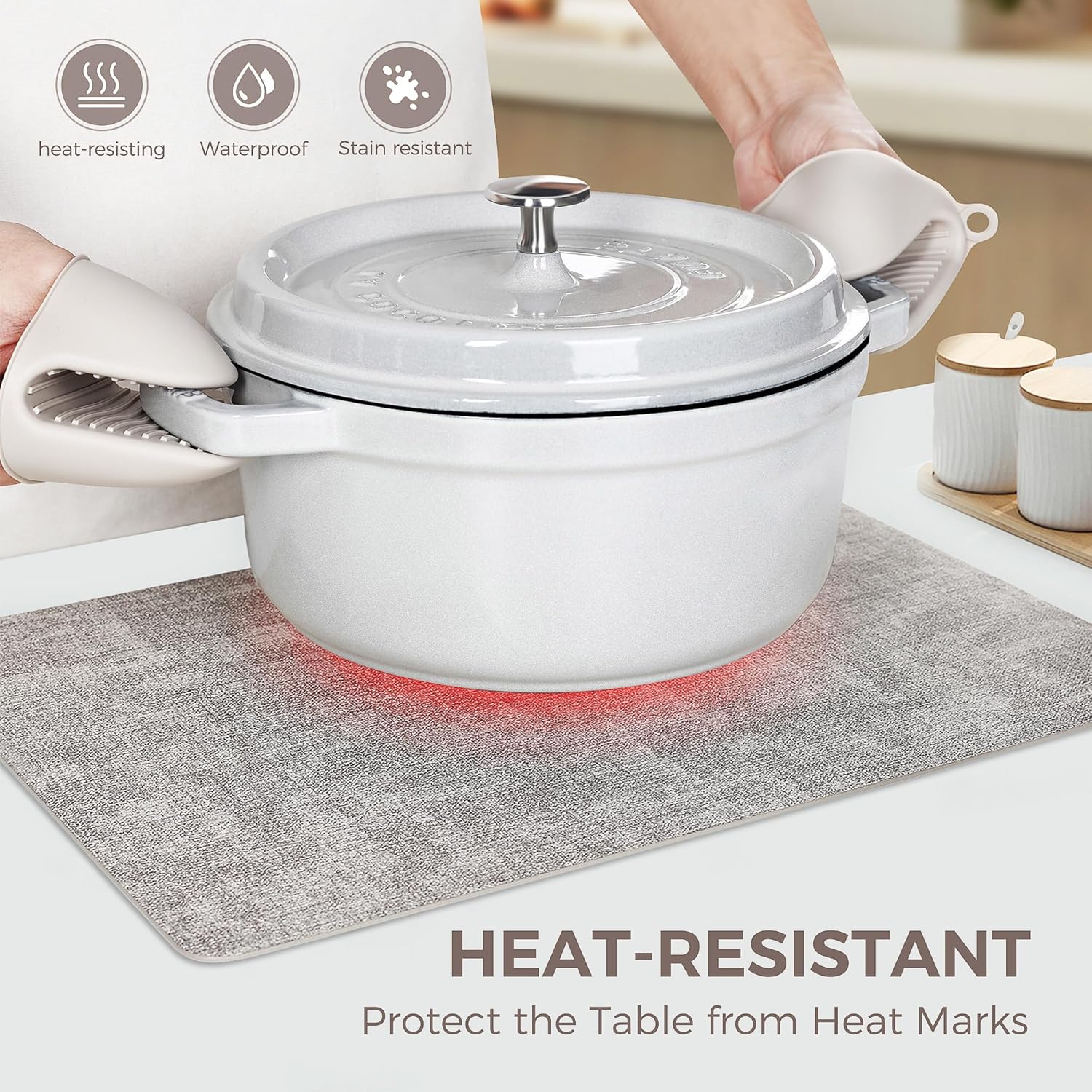 - HEAT RESISTANT PLACEMATS: These placemats can resist high temperature, avoiding leaving heat marks during meals, which is work great for hot dishes. Meanwhile, the placemats have a beautiful color, non-slip surface and easy to recover from creases