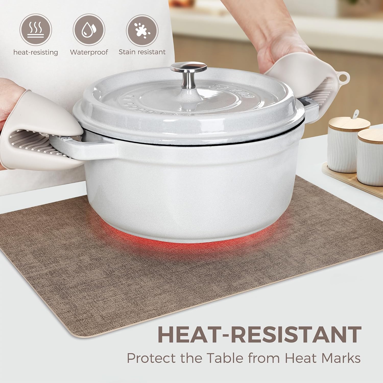 - HEAT RESISTANT PLACEMATS: These placemats can resist high temperature, avoiding leaving heat marks during meals, which is work great for hot dishes. Meanwhile, the placemats have a beautiful color, non-slip surface and easy to recover from creases