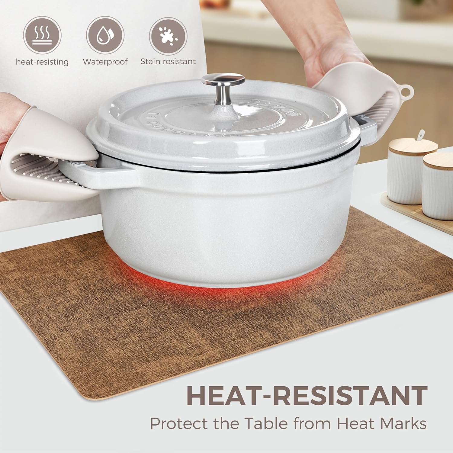 - HEAT RESISTANT PLACEMATS: These placemats can resist high temperature, avoiding leaving heat marks during meals, which is work great for hot dishes. Meanwhile, the placemats have a beautiful color, non-slip surface and easy to recover from creases