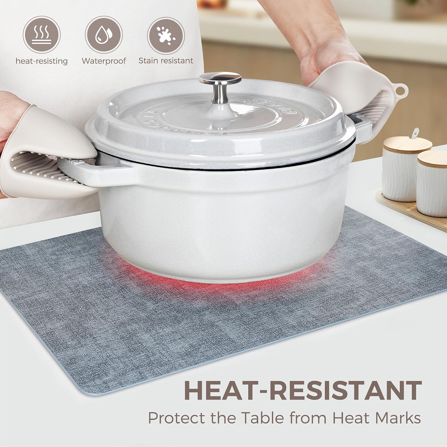 - HEAT RESISTANT PLACEMATS: These placemats can resist high temperature, avoiding leaving heat marks during meals, which is work great for hot dishes. Meanwhile, the placemats have a beautiful color, non-slip surface and easy to recover from creases