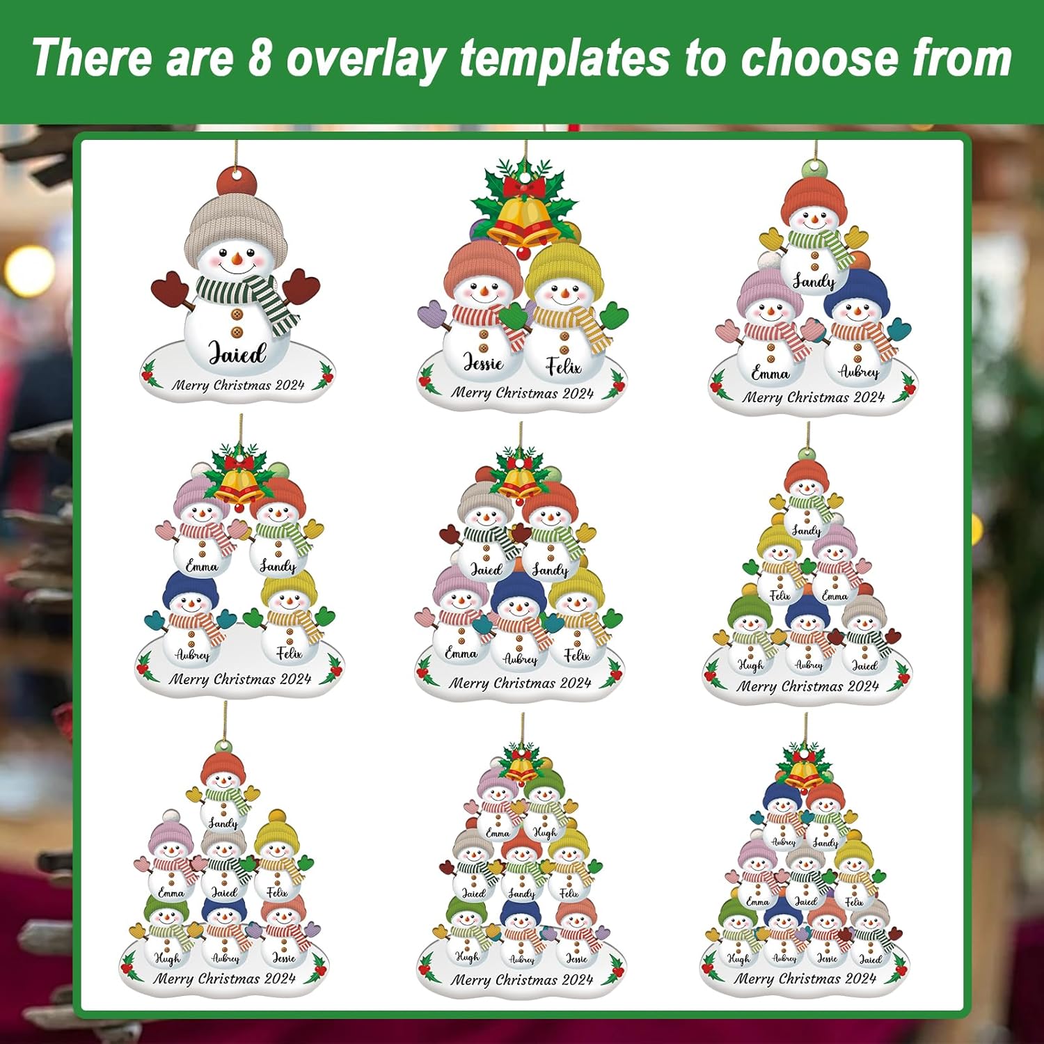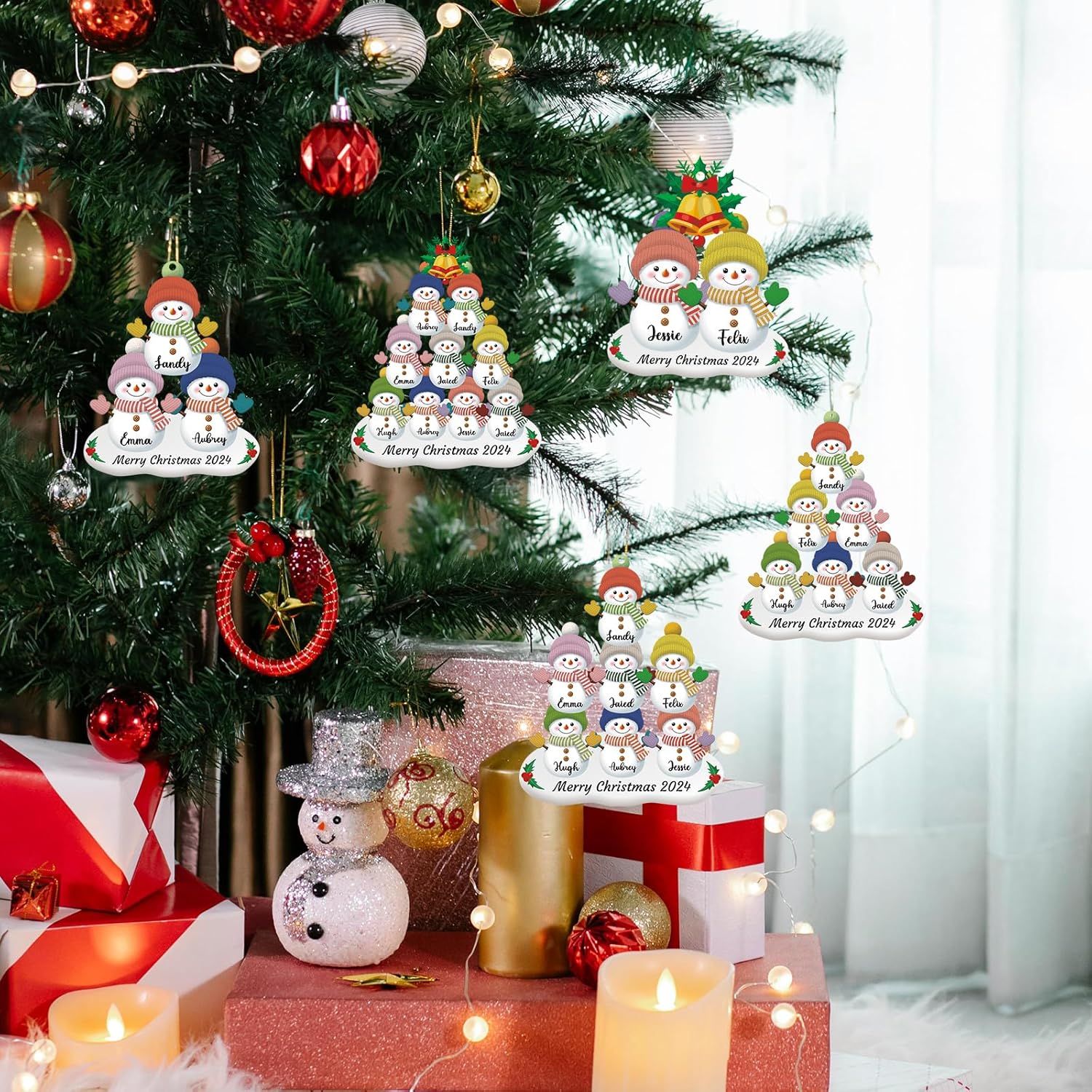 - Charming Snowman Ornaments – Our snowman Ornaments can be customized with 1-8 family members' names, each wearing a different colored hat, perfect for representing family members or friends. At 3.97 inches tall and 3.15 width, these ornaments are perfectly sized for your holiday display.