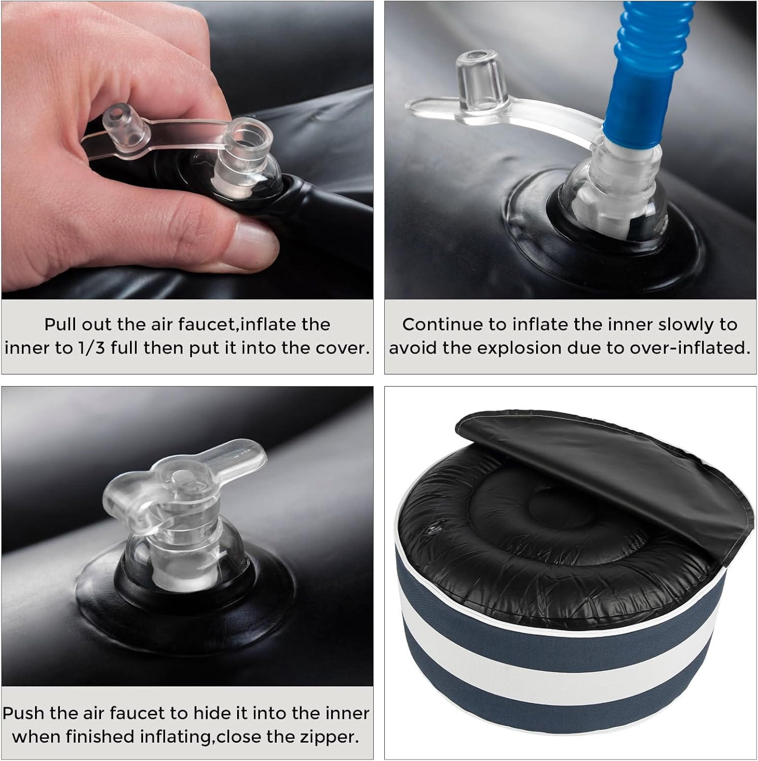 - 【Widely Used】-Inflatable ottoman can be a great addition to a living room or family room, where it can serve as extra seating or a footrest. Also a great option for outdoor spaces like patio, garden or pool areas, where they can provide extra seating or a place to rest your feet.