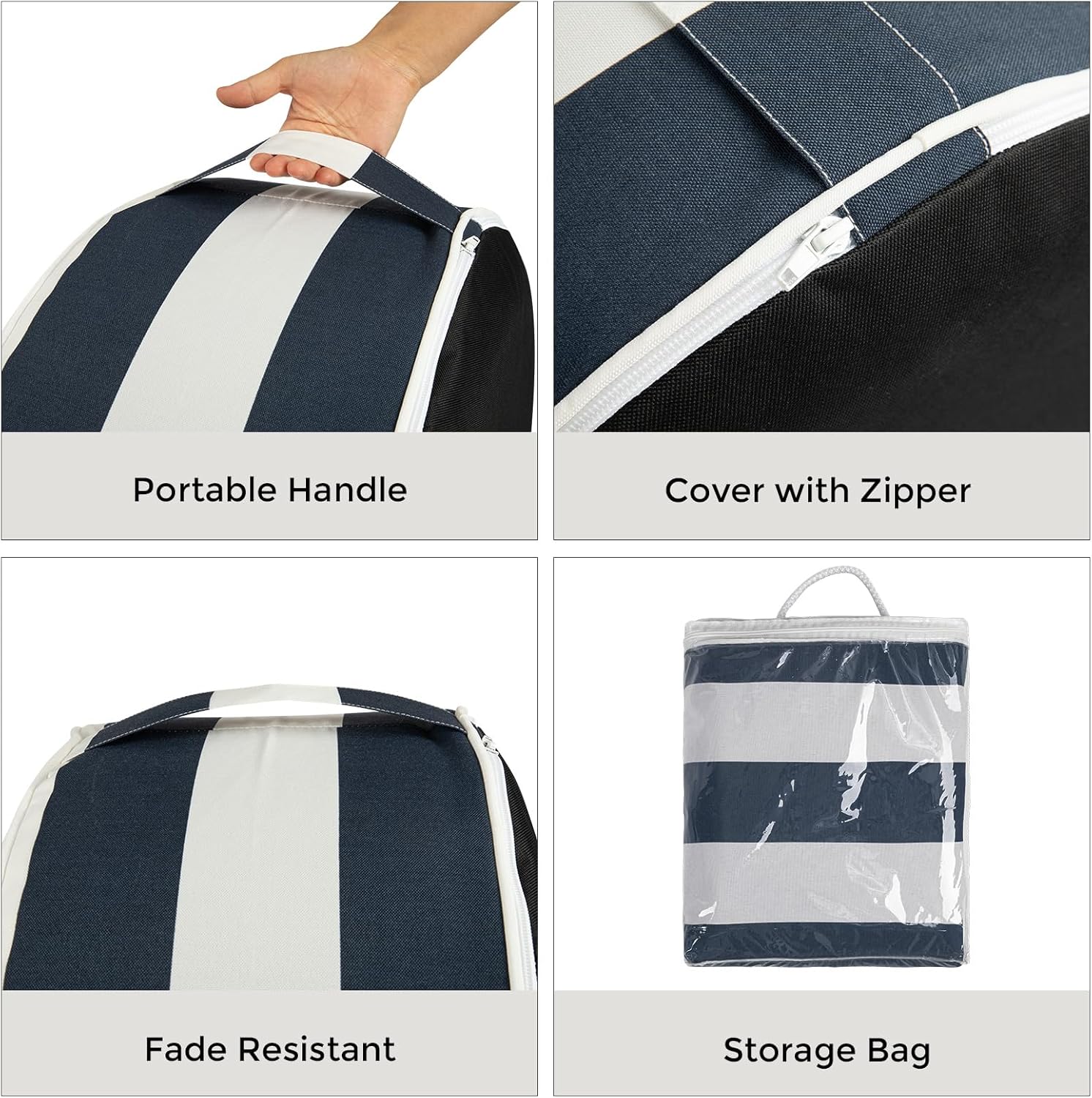 FUNHOME Inflatable Outdoor Ottoman with Air Pump,20"x9" Portable Patio Pouf,Water Resistant,Fade-Resistant,Round Blow Up Footrest Stools for Home Garden Camping Travel(Blue White)