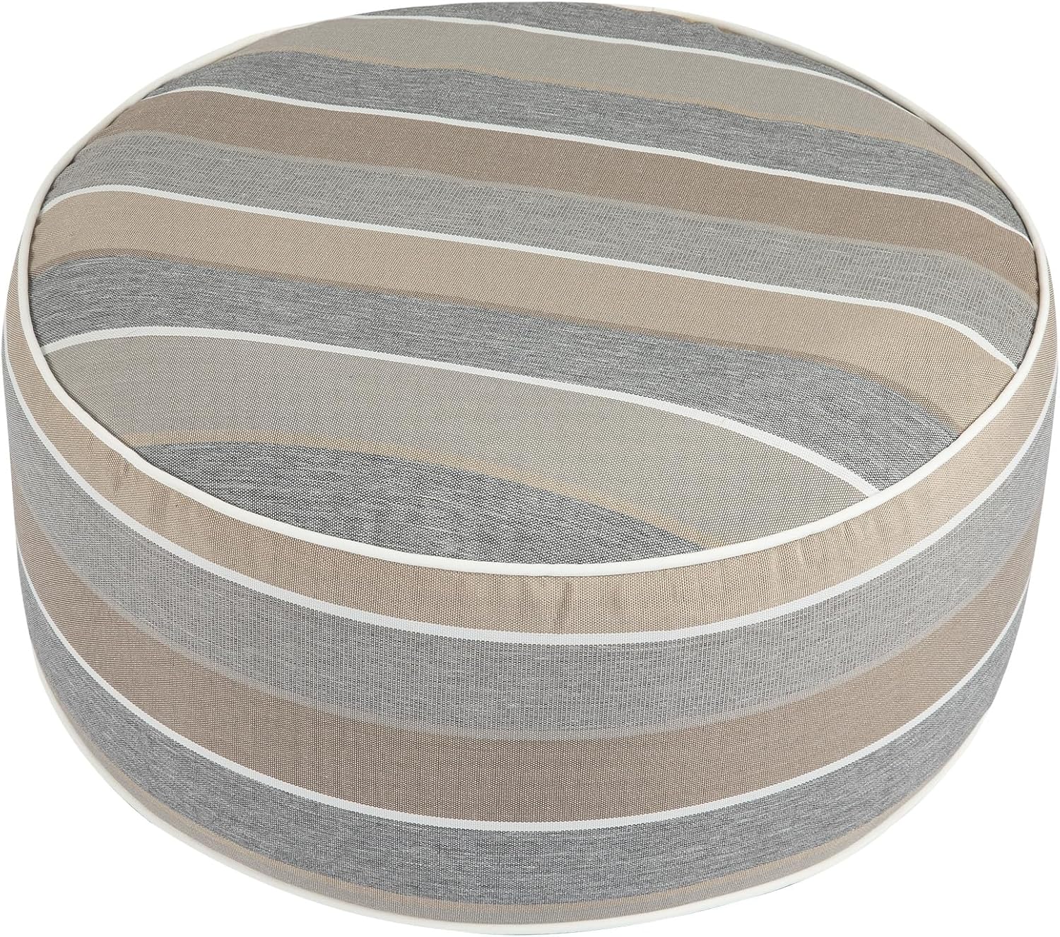 FUNHOME Inflatable Outdoor Ottoman with Air Pump,20"x9" Portable Patio Pouf,Water Resistant,Fade-Resistant,Round Blow Up Footrest Stools for Home Garden Camping Travel(Gray Stripe)