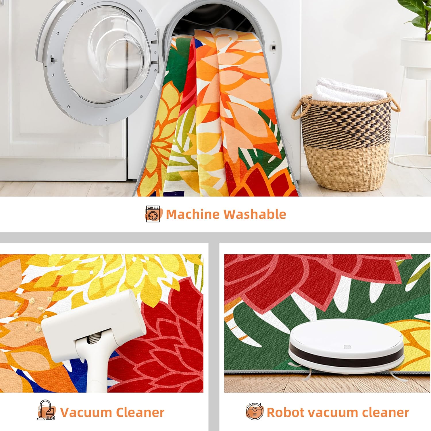 - Floral Pattern Design: Brighten up your outdoor space with our stunning floral pattern washable rug, perfect for patios, decks, or gardens, adding a touch of elegance and charm to any setting.