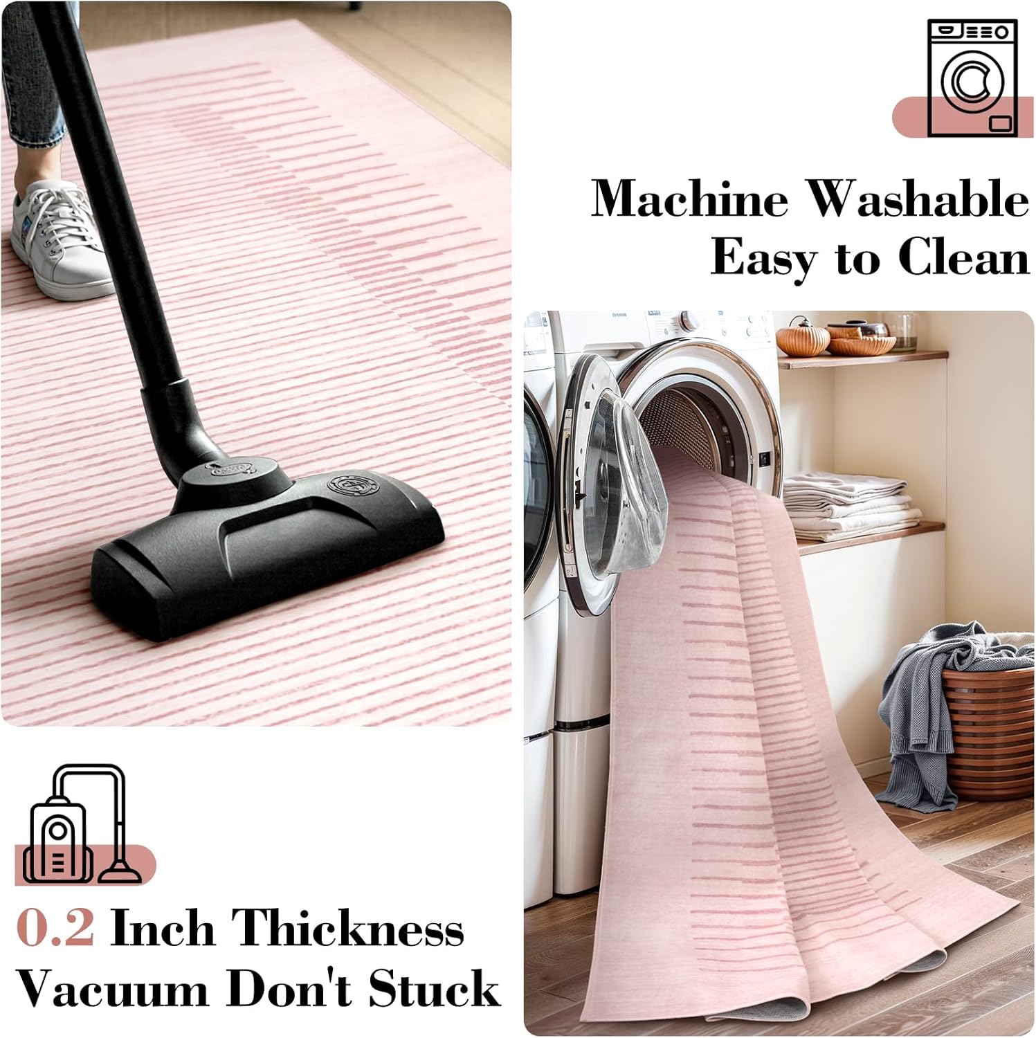 Wonnitar Striped Large Rugs for Living Room, Washable 9x12 Area Rugs for Bedroom, Non-Slip Soft Minimalist Pink Area Rug Throw Carpet for Nursery Playroom Guest Room (Pink,9' x 12')
