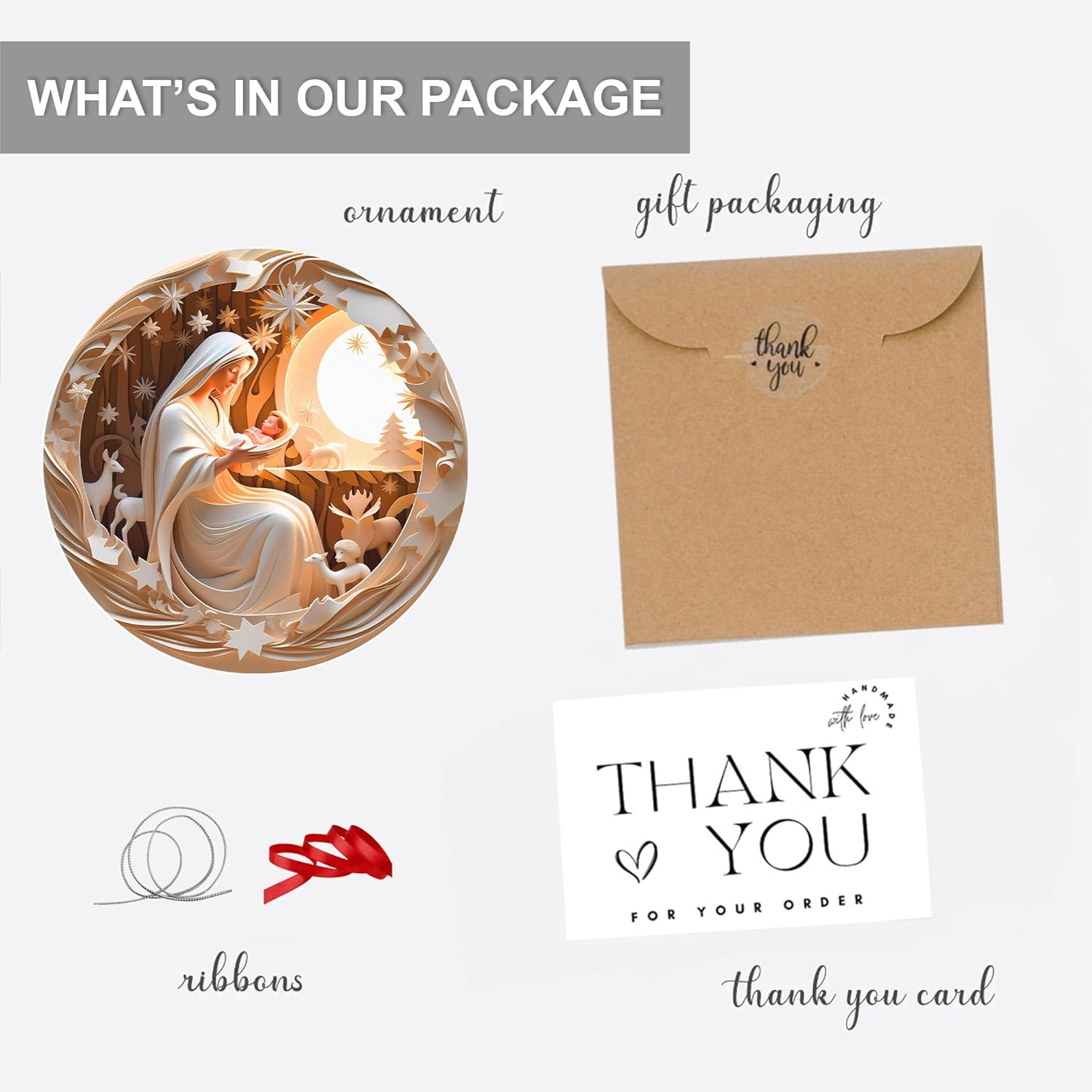 Jabihome Christmas Ornaments 2025, Exchange for Women, Men, Collectible Dated Year Ornaments for Tree, Unique Acrylic Suncatcher, Printed Stained Glass Effect Decor (Moonlit Nativity)