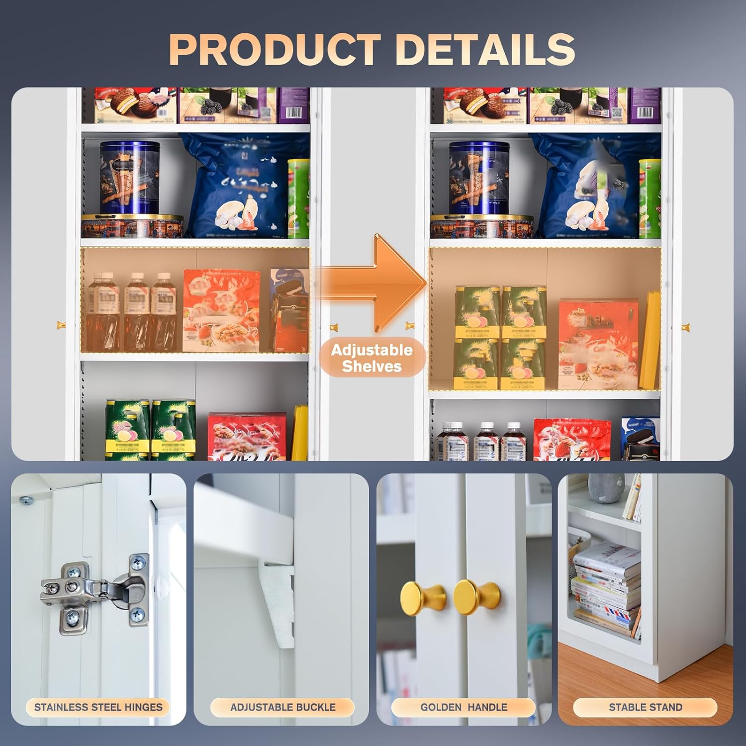 - Bookcase with Adjustable Shelves:5 tier bookcases white with 4 flexible shelves,which can be removed or adjusted to suit the needs of storing large-sized items.Freestanding utility cabinet with a lot of storage space for home office storage in living room/kitchen/study room/bathroom and more.