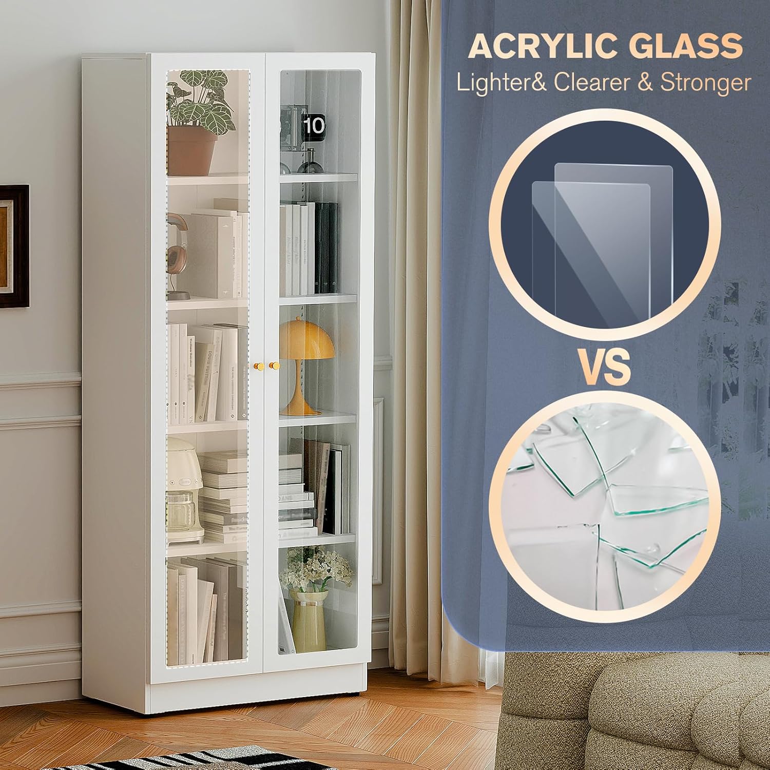 - Odor-Free Metal Furniture:With the latest power coated technology, this freestanding bookcase is nice and sturdy with no odor. Metal glass cabinet coated with phosphorus-free powder finish for resistance to chipping, scraping, corrosion and rust. keeping fresh color while good for health. The metal cabinet is resistant to scratch, corrosion and rust. Selected materials for the safety of family.