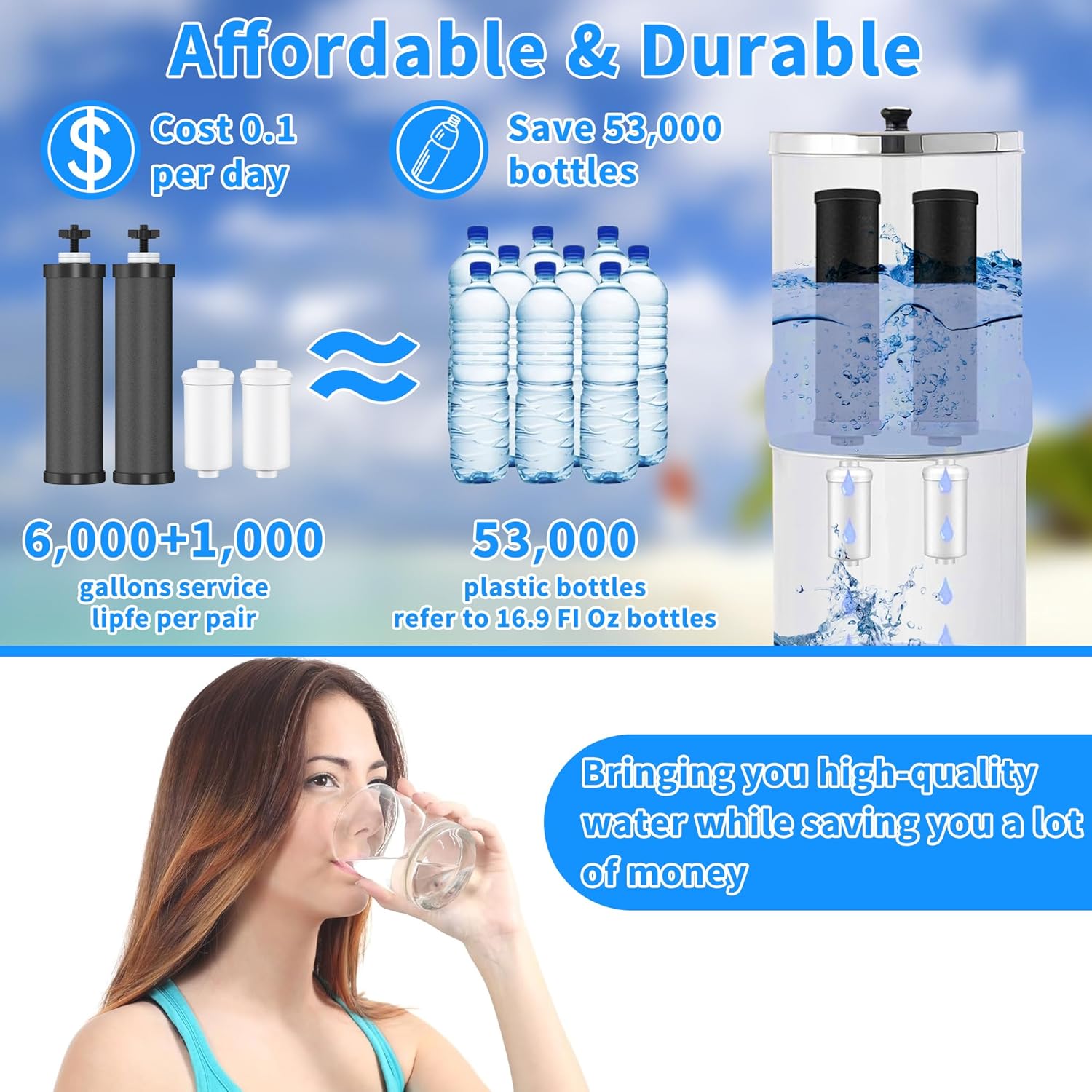 - Durable Life Span:For optimal performance of the water filter,we recommend replacing the black carbon filter every 6,000 gallons per pair and the white fluoride filter every 1,000 gallons per pair (Filter performance may vary based on local water conditions). Please note that you have to totally submer