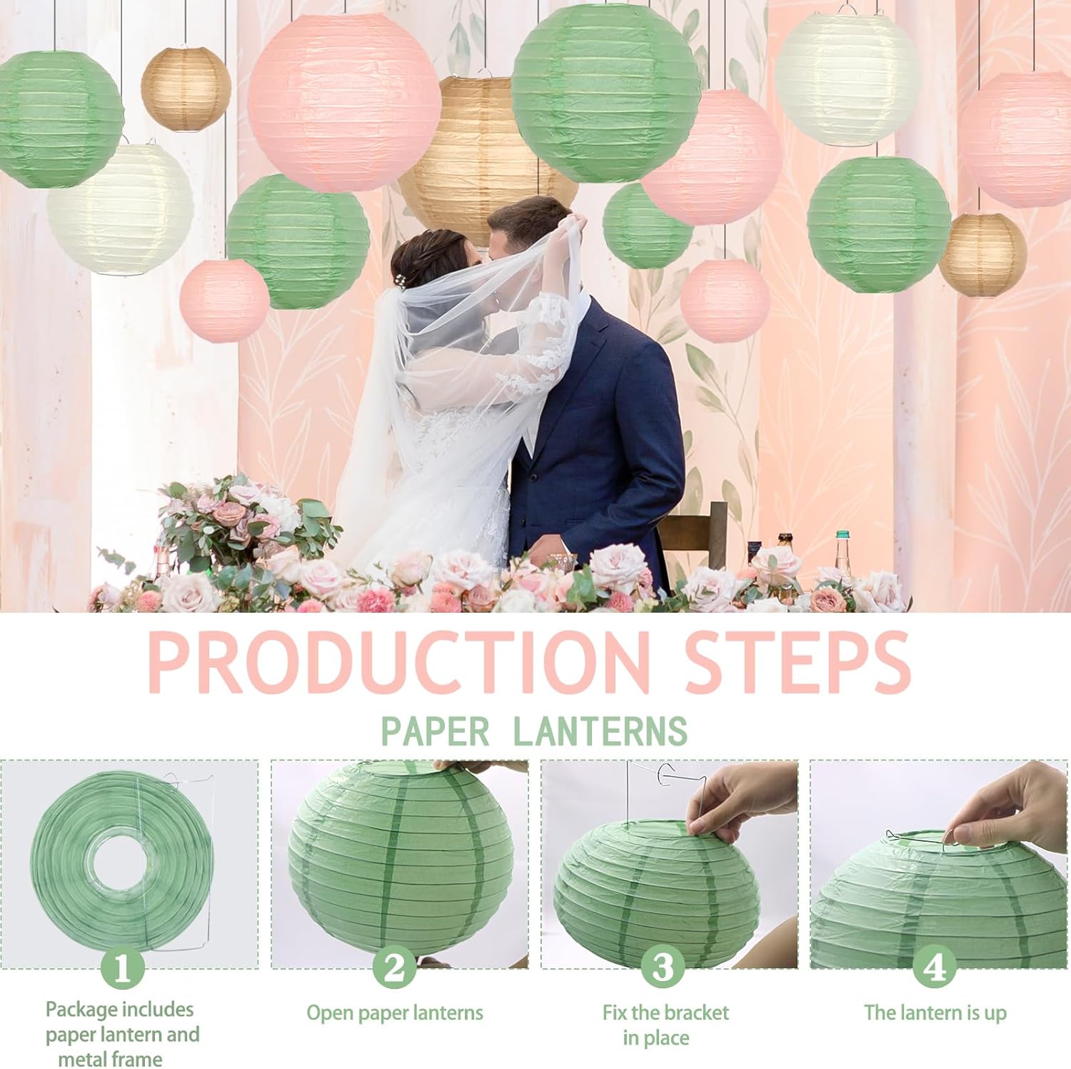 - SAGE GREEN BROWN PINK THEME PARTY DECOR - Paper lanterns are suitable for children's DIY activities, also suitable for events such as wedding party decoration, baby showers, birthday party, graduation, bridal shower, easter, engagement, Christmas, new years, outdoor BBQ, classroom, and office party , celebrations, market decoration summer garden party and other theme parties. For night use, you can put a light in the lantern. But LED lights NOT included