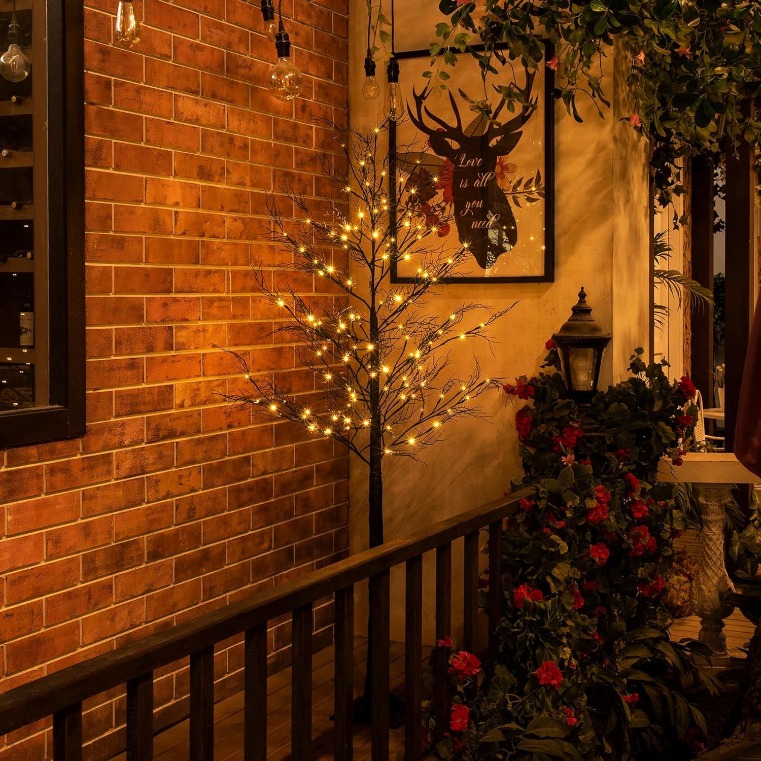 - 🎃Unique Design: 120LED Willow tree with warm white light, black trunk with perfect curve, coral-shaped branches add a mesmerizing atmosphere. Stable base stand with 4 ground stakes attached.